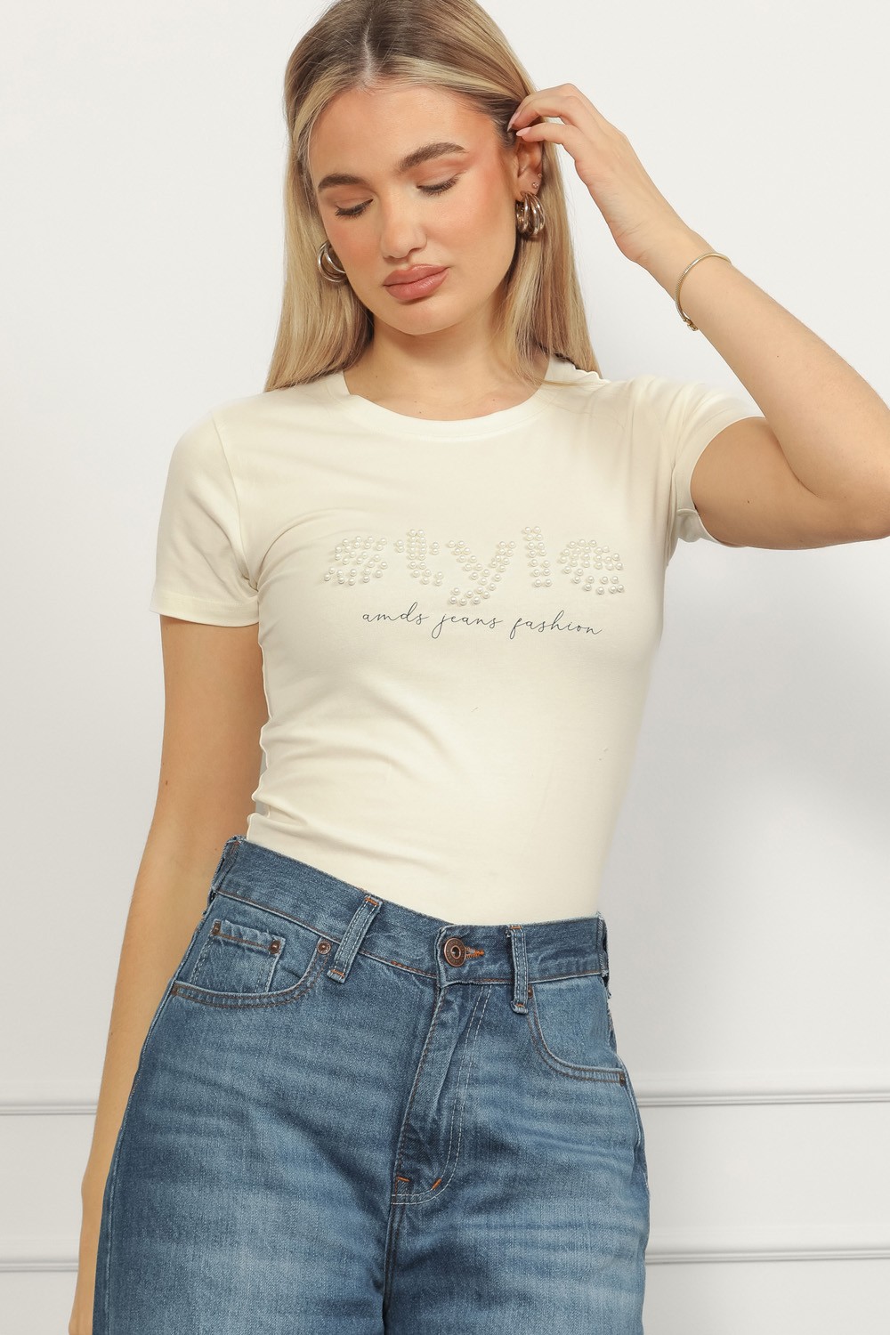 Ležerna i ženstvena majica u prljavo bijeloj boji, idealna za svakodnevne kombinacije. Klasičan okrugli izrez i ugodan pamučni materijal osiguravaju maksimalnu udobnost tijekom cijelog dana...
