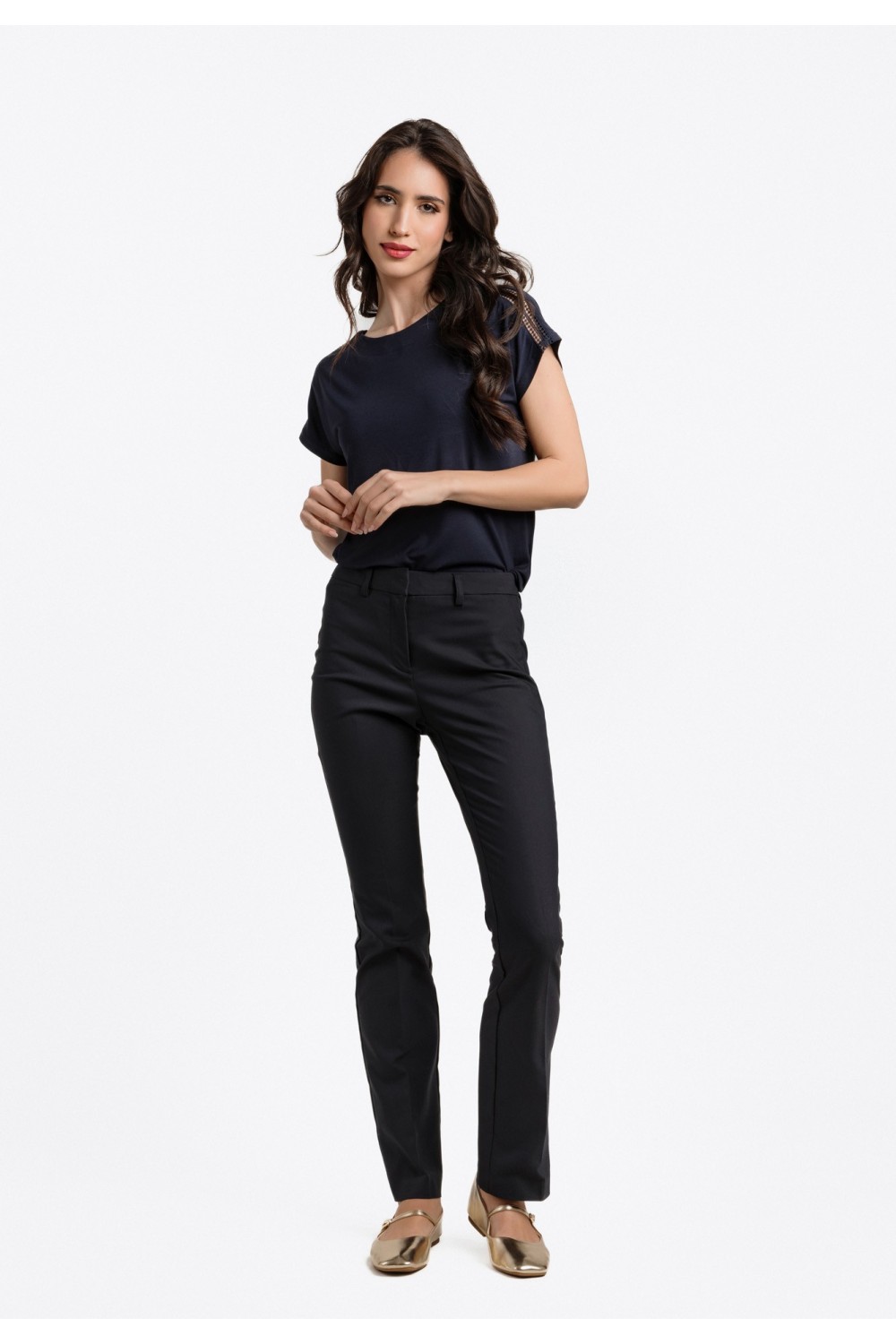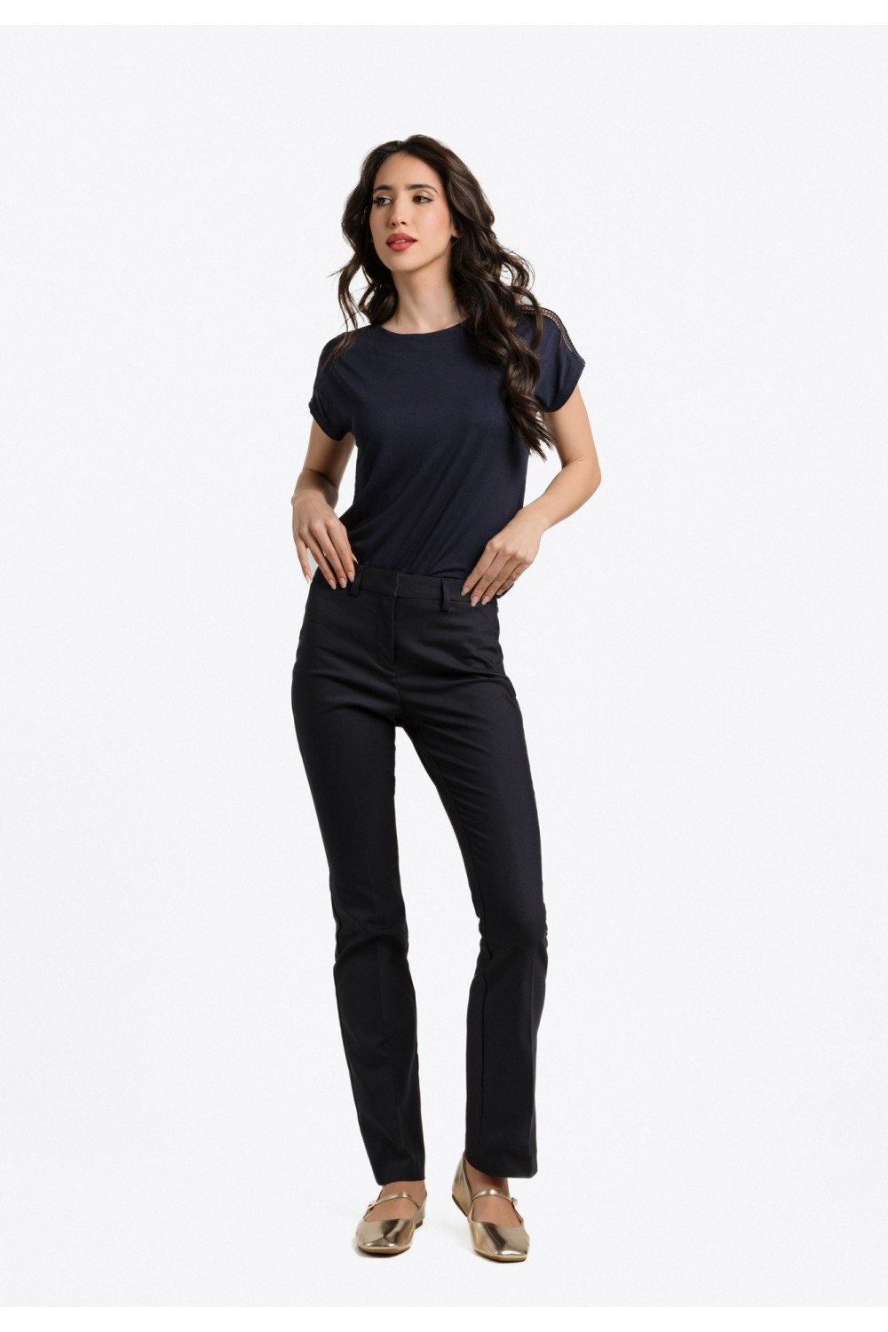 Ženska majica kraćih rukava sa svjetlucavim nitnama na rubu ovratnika i rukavima. -70% MODALNO VLAKNO, 30% POLIESTERModel je visok 175 cm i nosi veličinu S/V36..