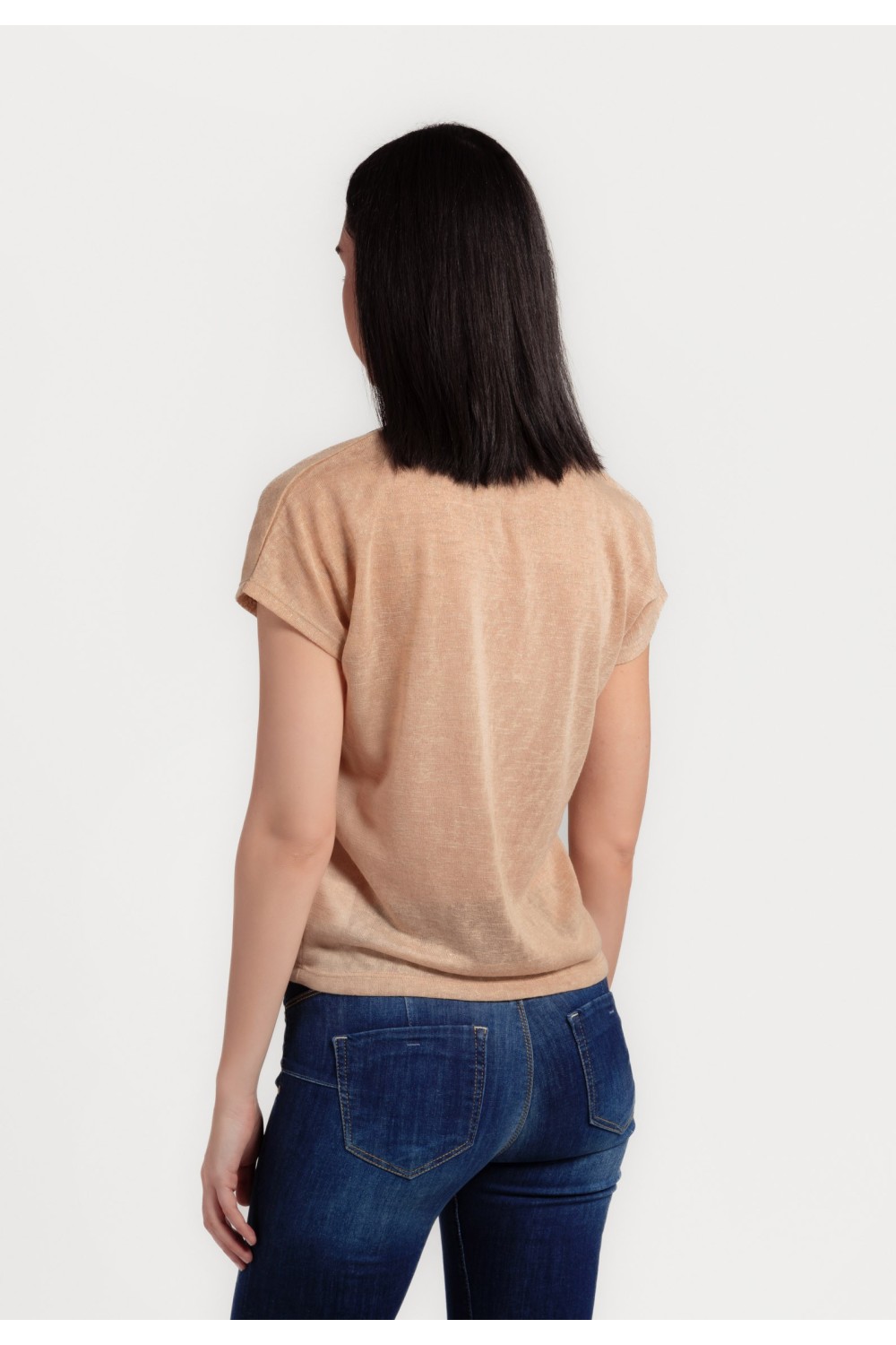 Rupičasta, polu prozirna majica kratkog rukava. V-izrez sa detaljima smeđih dugmadi sprijeda.-96% POLIESTER, 4% ELASTINModel je visok 180 cm i nosi veličinu S/V36..