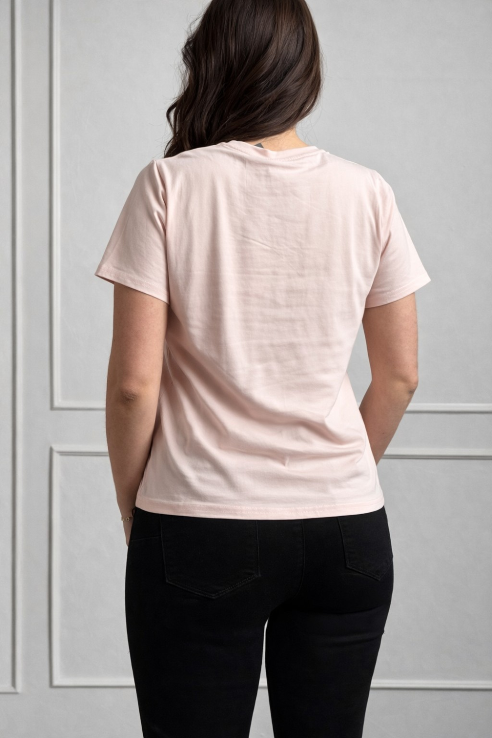 Majica s printom Paris u tipografiji i detaljima u obliku sjajnih dugmadi koji joj daju chic dojam bez previše truda. Posebnost ovog modela su kratki čipkasti rukavi koji majicu čine posebni..