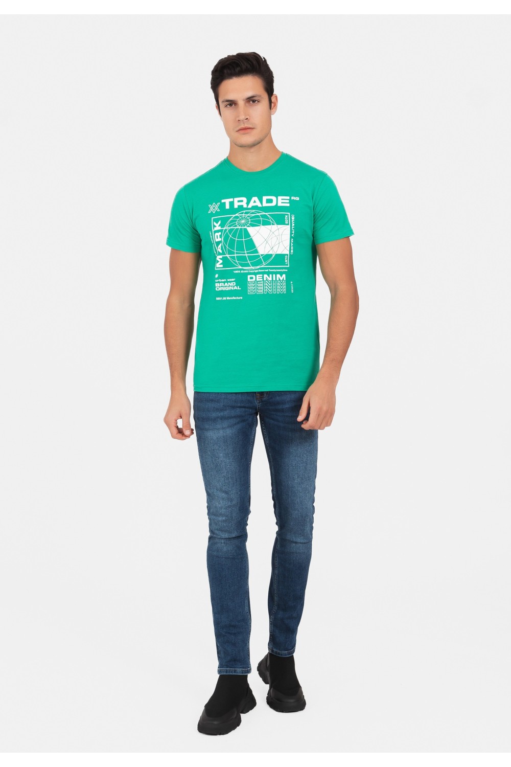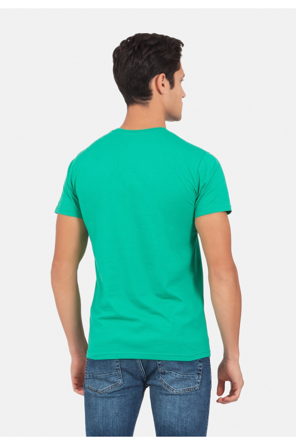 Pamučna bazna muška majica, kratkog rukava i okruglog ovratnika. Ušivena koncem utonirana zelena zastavica s lijeve strane, te patch s desne strane s AMDS Jeans oznakom. Slim fit nosivnost.-..