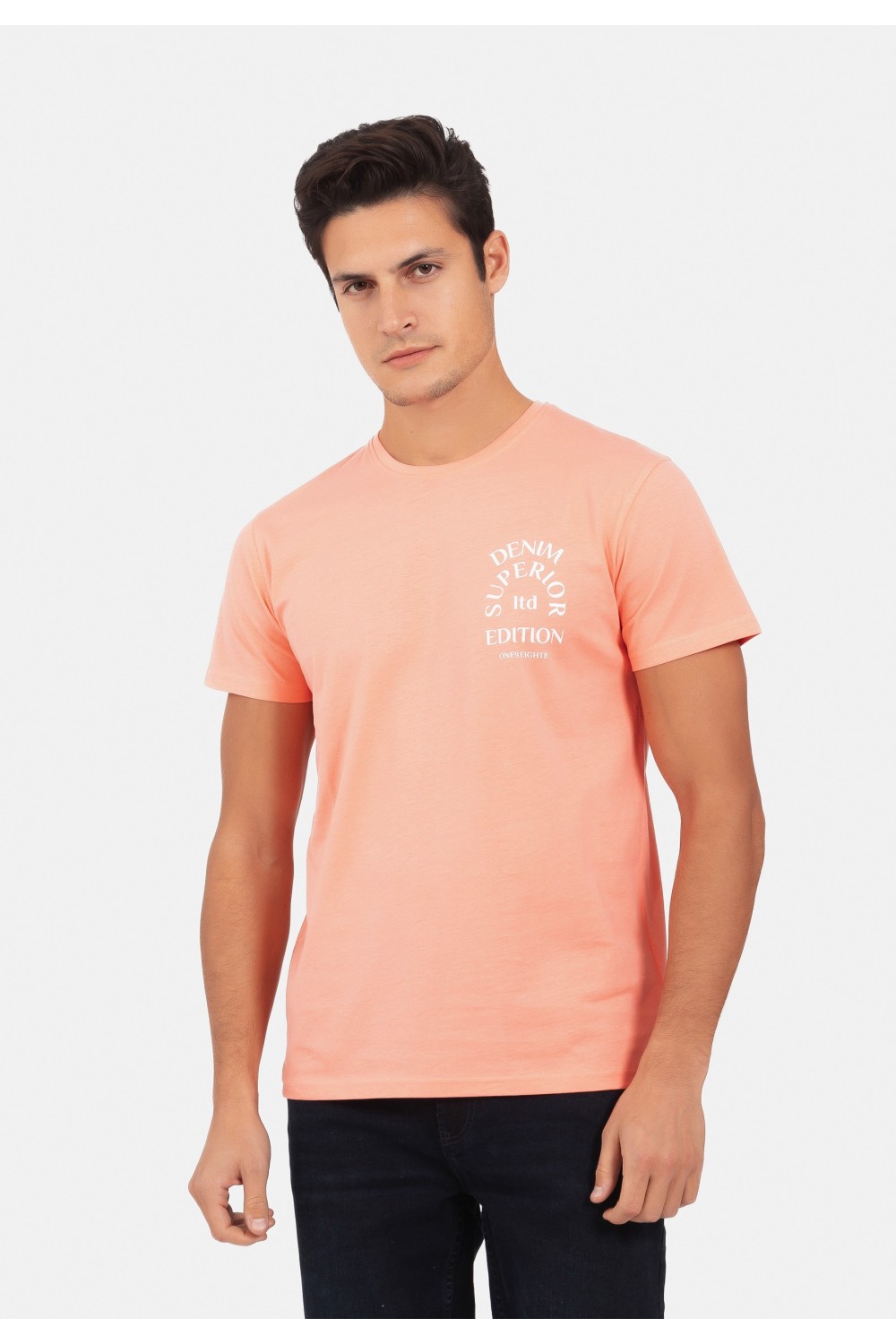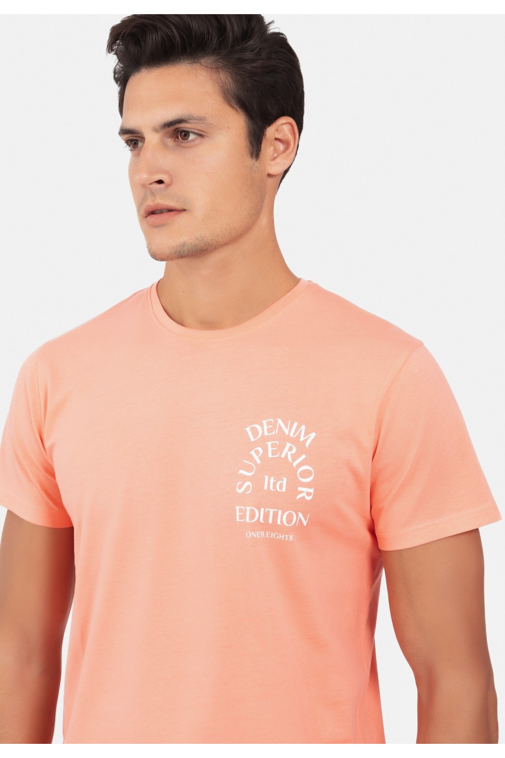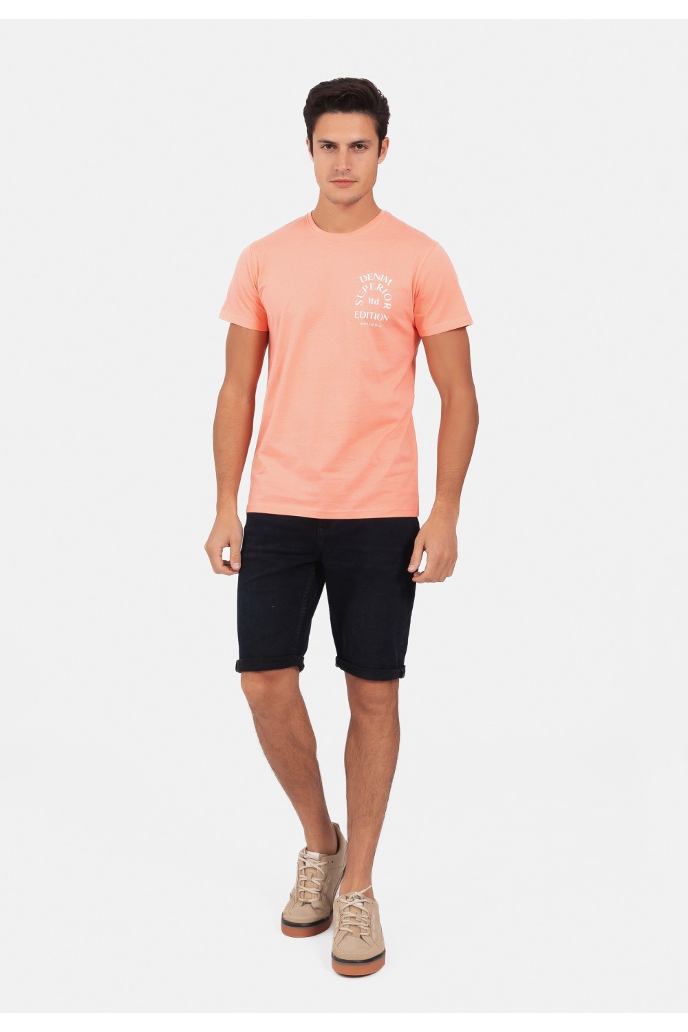 Pamučna muška polo majica kratkih rukava. Na rukavima i kragni, narančasti detalji uz rubove. Kopčanje gumbima uz kragnu. Okrugli narančasti logo s lijeve strane. ..