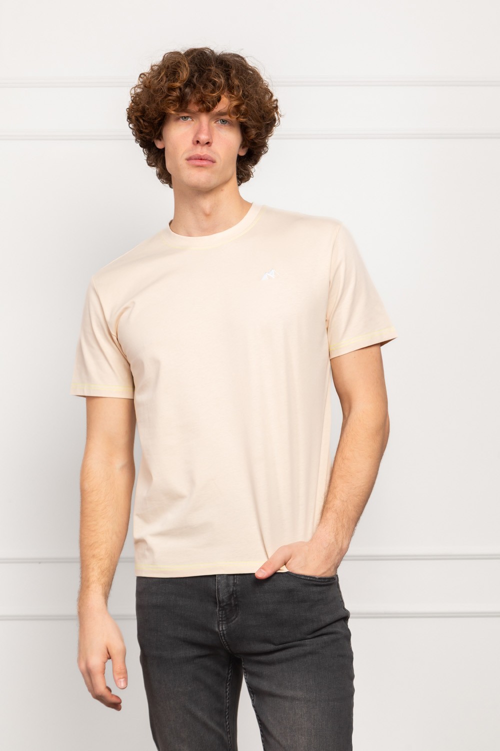 Minimalistička muška pamučna majica kratkih rukava u trendi bež nijansi. Čista, jednostavna i jako nosiva. Na prsima je decentan, izvezeni AMDS motiv koji joj daje premium dojam bez pretjerivanja.