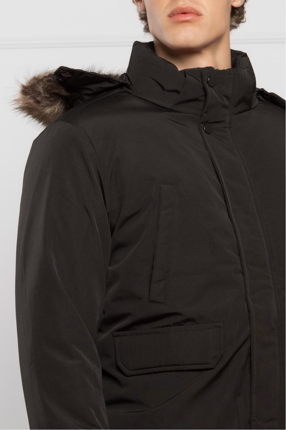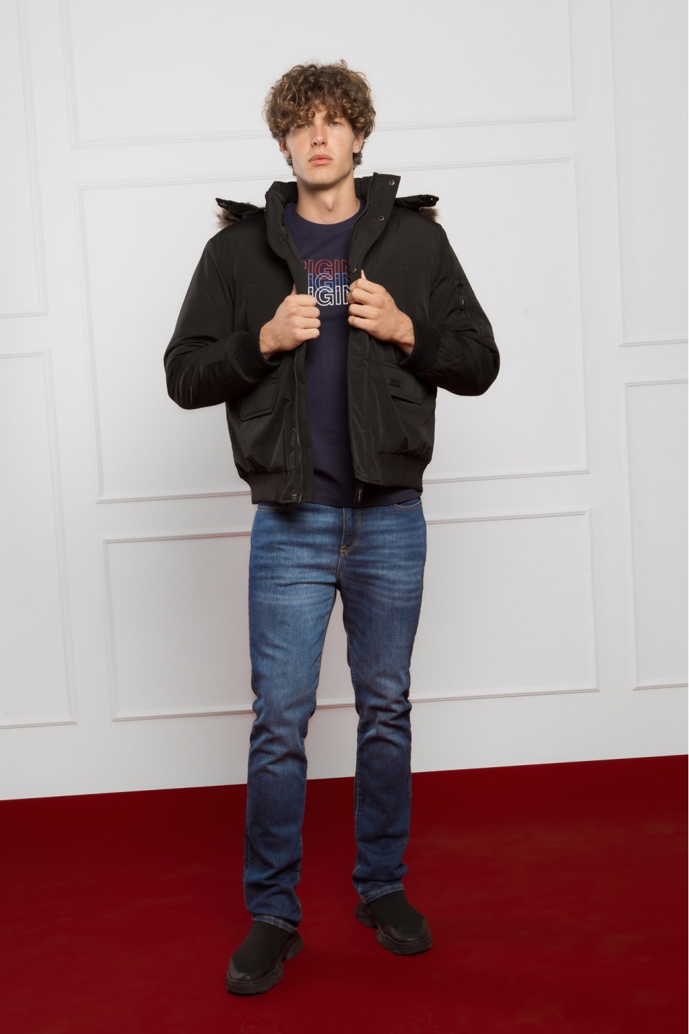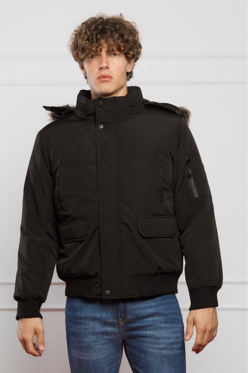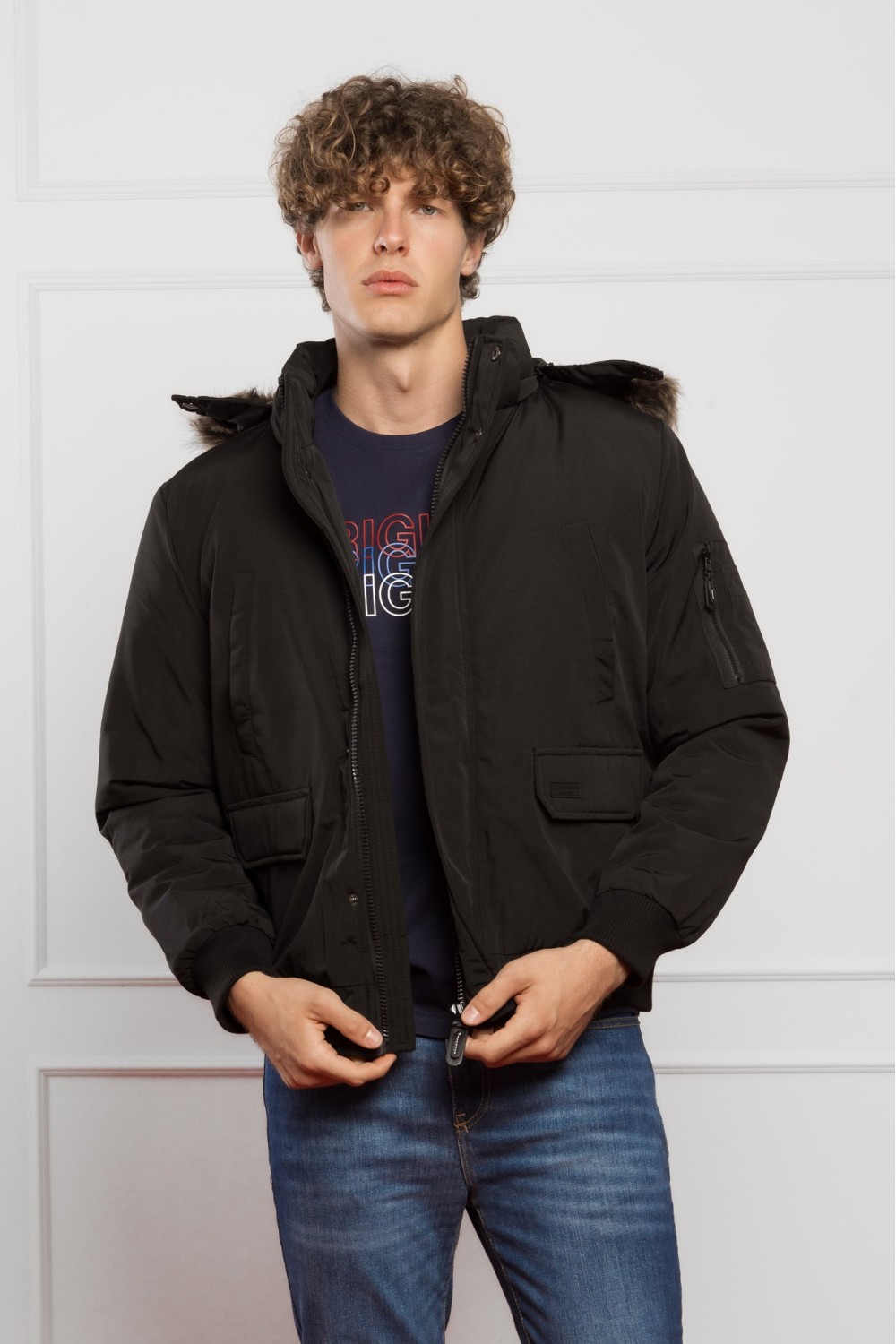 Muška zimska jakna u tamno plavoj boji s kapuljačom i detaljem od umjetnog krzna pruža savršenu zaštitu od hladnoće i vjetra. Klasičan kroj u kombinaciji s praktičnim džepovima i modernim di..