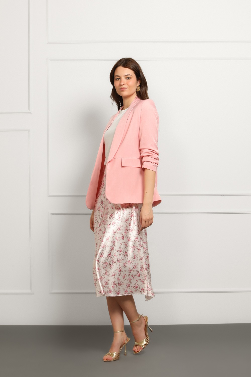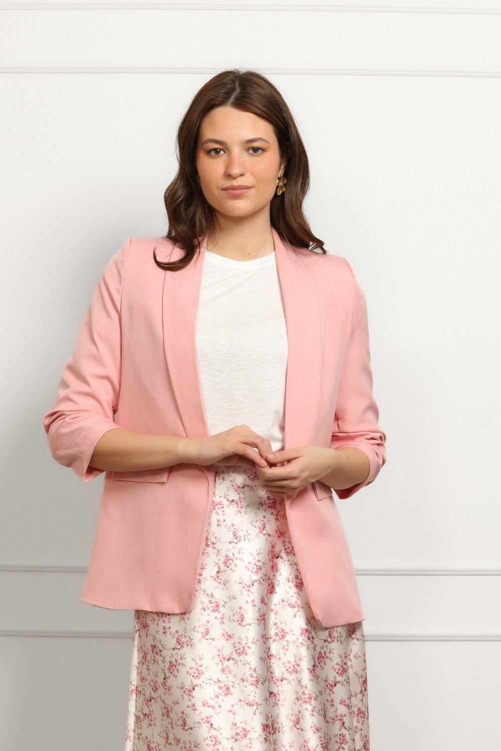 Ženski bež sako klasičnog kroja savršen je izbor za elegantne i poslovne kombinacije. Model je strukiranog kroja koji lijepo prati liniju tijela i naglašava siluetu, dok rever kragna i jedno..