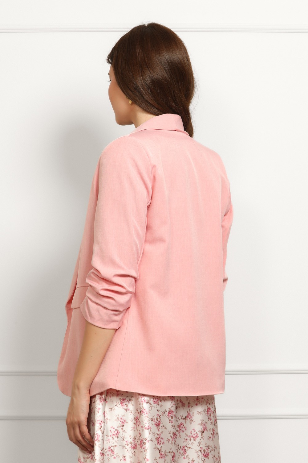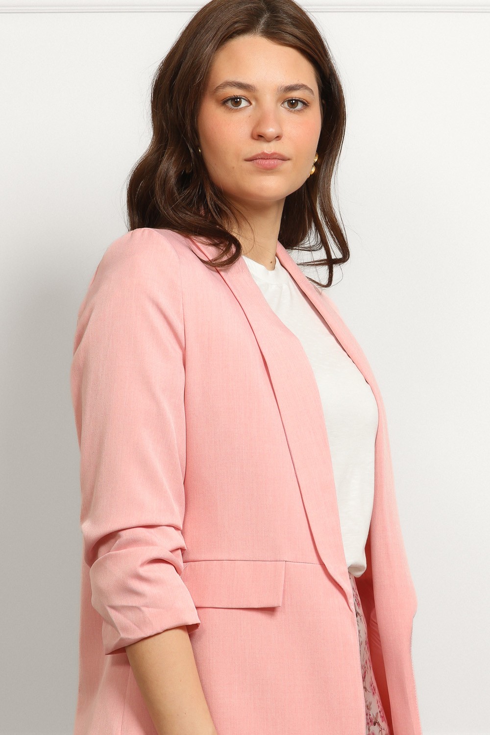 Ženski sako u intenzivnoj zelenoj boji ističe se modernim krojem i elegantnom siluetom. Blago strukirani model lijepo prati liniju tijela i naglašava figuru, dok rever ovratnik i dvoredno ko..