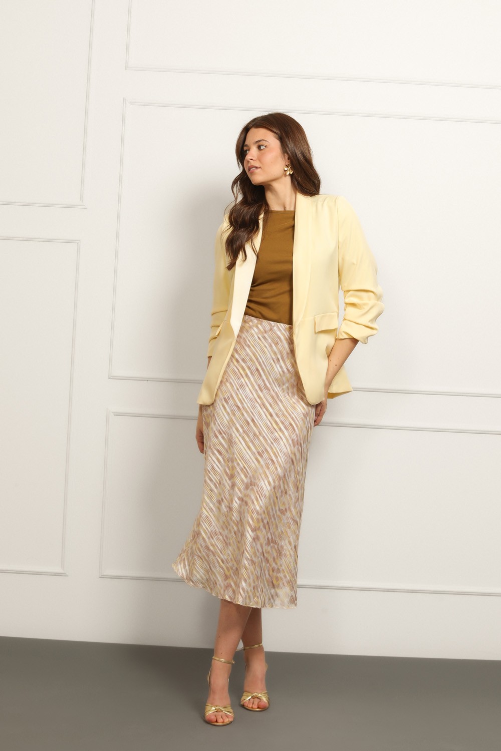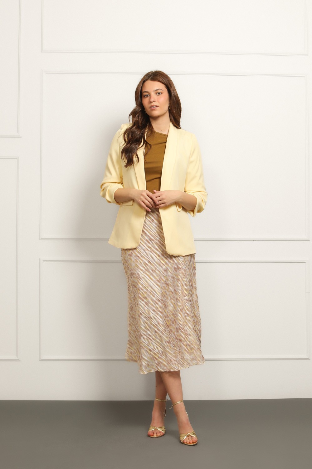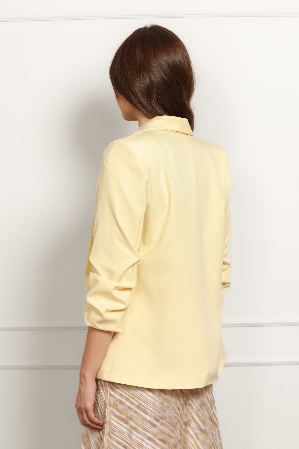 Ženski bež sako klasičnog kroja savršen je izbor za elegantne i poslovne kombinacije. Model je strukiranog kroja koji lijepo prati liniju tijela i naglašava siluetu, dok rever kragna i jedno..