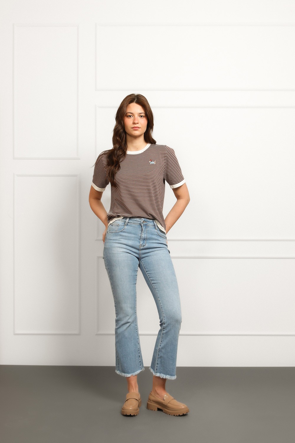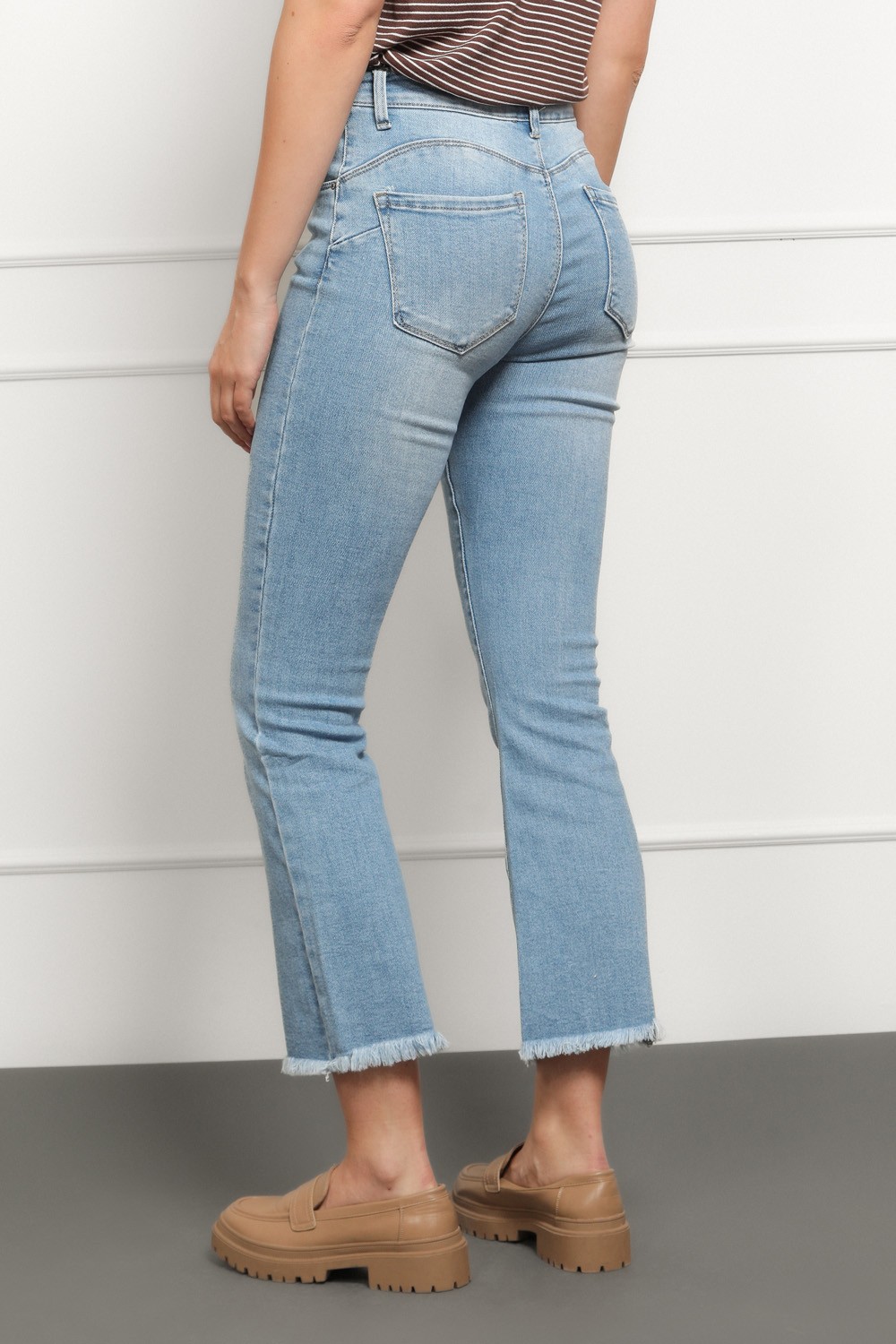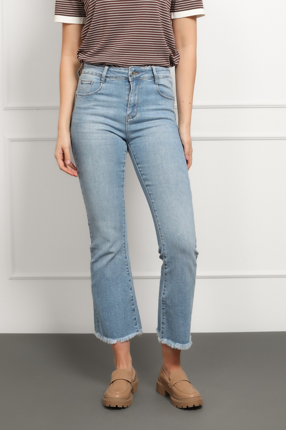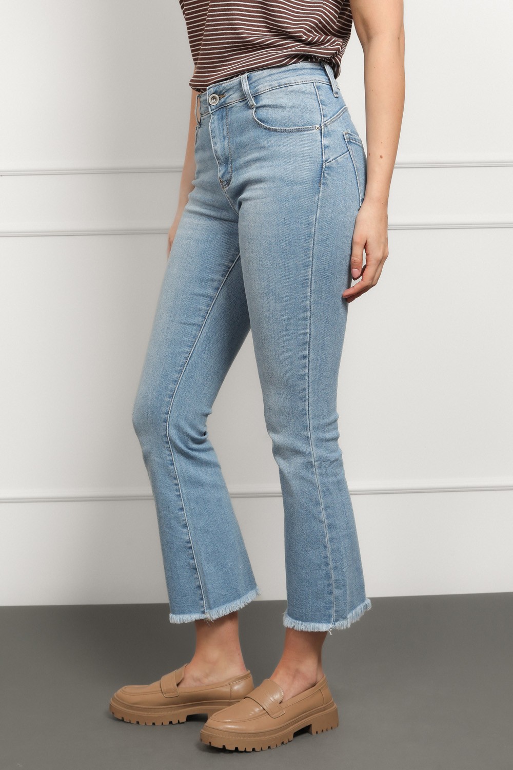 Klasične traperice u svijetloj ispranoj nijansi koje nikad ne izlaze iz mode. Model srednje visokog struka i lagano skraćenim, blago širokim nogavicama. Savršeno pristaju uz tenisice, sandale ili štikle.