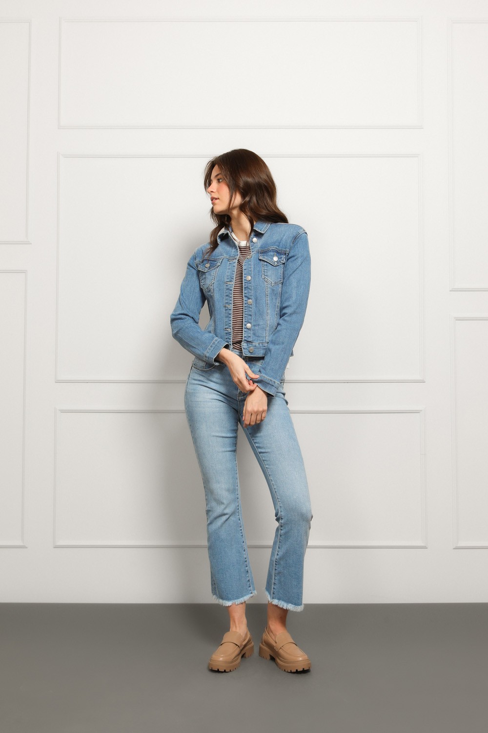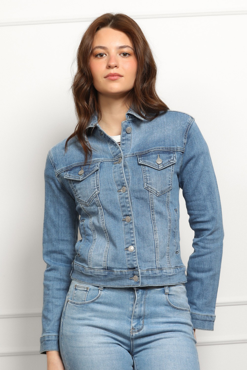 Klasična traper jakna u srednje plavom wash efektu koja nikad ne izlazi iz mode. Strukturirani kroj, metalni gumbi i džepovi s preklopom daju joj autentičan denim izgled, dok blaga elastičnost osigurava udobnost i bolje prianjanje uz tijelo.