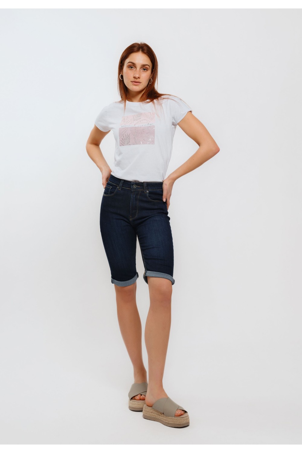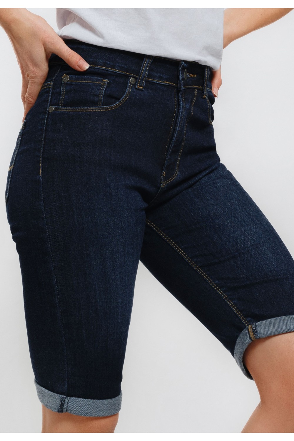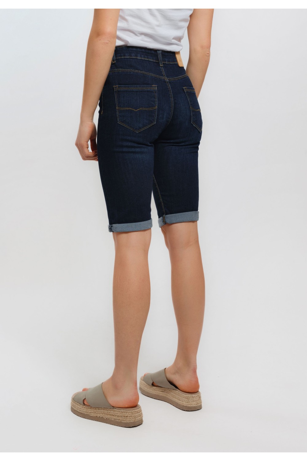Ženske traper bermude, pet džepova i kopčanje patent zatvaračem sprijeda. -98% PAMUK, 2% ELASTINModel je visok 171 cm i nosi veličinu S27..