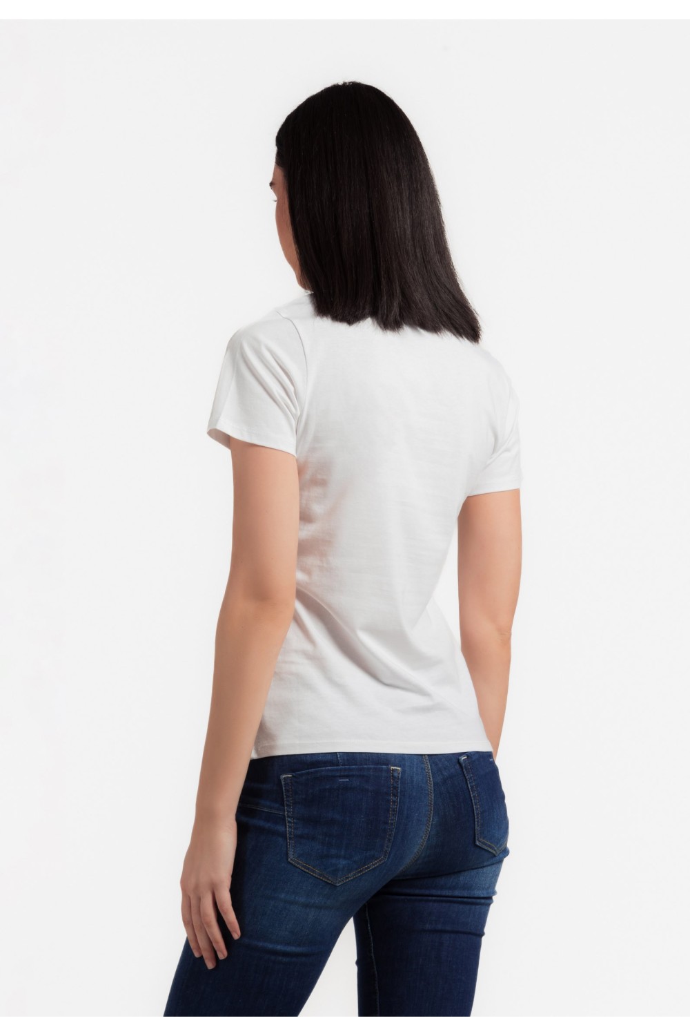 Ženska majica kratkog rukava sa cvjetnim tiskom sprijeda i detaljima apliciranih cirkona. Okruglog ovratnika.-50% PAMUK, 50% MODALNO VLAKNOModel je visok 175 cm i nosi veličinu S/V36..