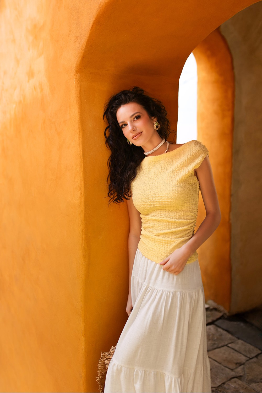 Topli zidovi u ljetnim nijansama, stara kamena stepeništa, drvena vrata u pastelnim bojama i detalji poput velikih amfora ili posuda s biljkama stvaraju atmosferu koja savršeno prati kolekciju. Oduševljenje je bilo teško sakriti s obzirom da je lokacija bila još lijepša uživo. Ne možemo zaboraviti spomenuti niti znatiželjne poglede lokalnih stanovnika kada smo se pojavili kao pravi stranci sa opremom i raznim rekvizitima. Mislimo da su nam samo magarci u tom trenutku jedini bili zavidni, s obzirom na količinu stvari koje smo teglili kako bi pripremili set za početak snimanja.
