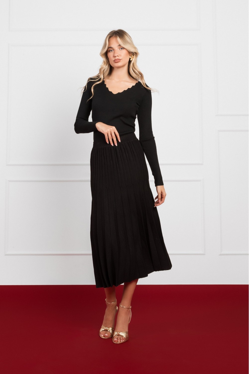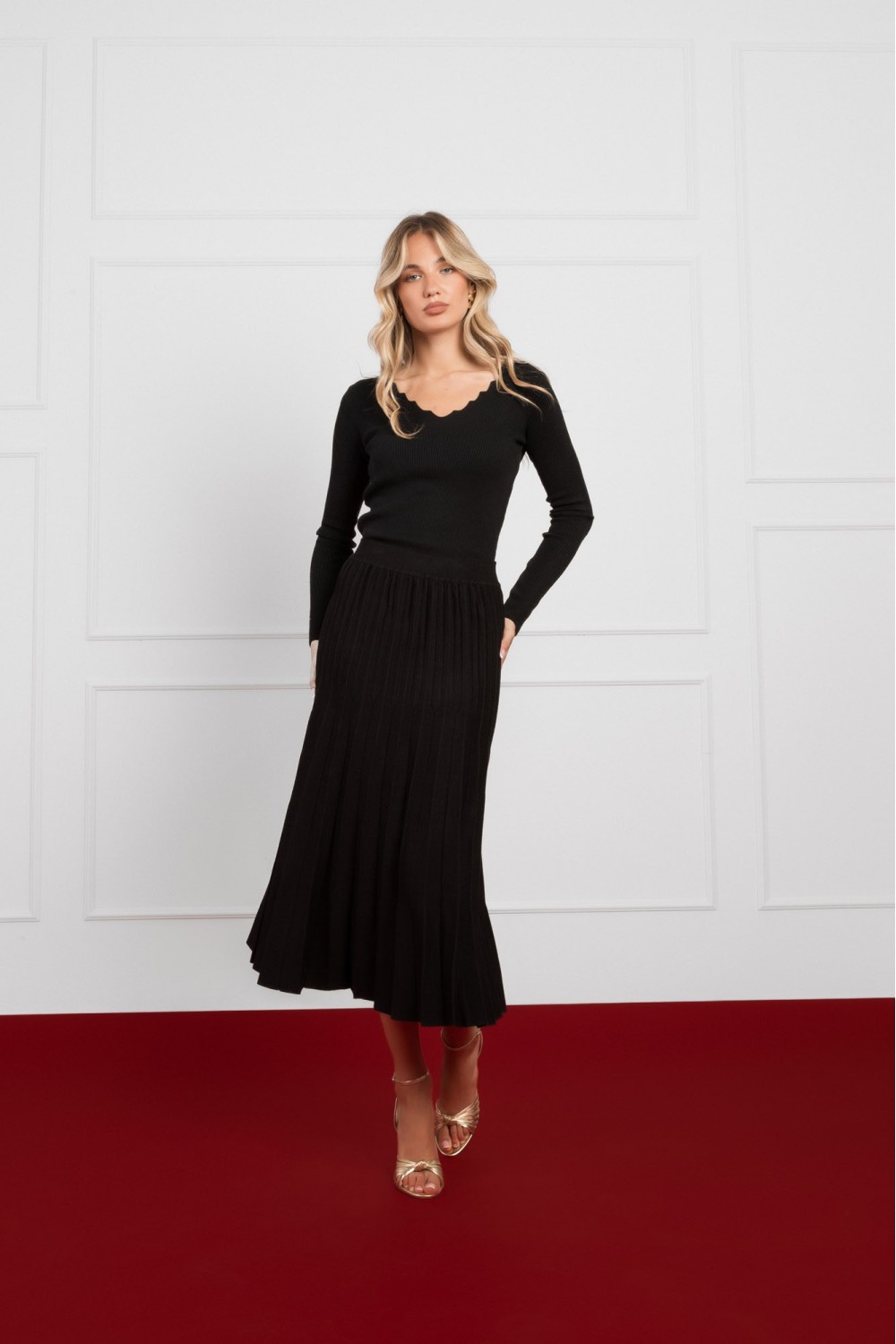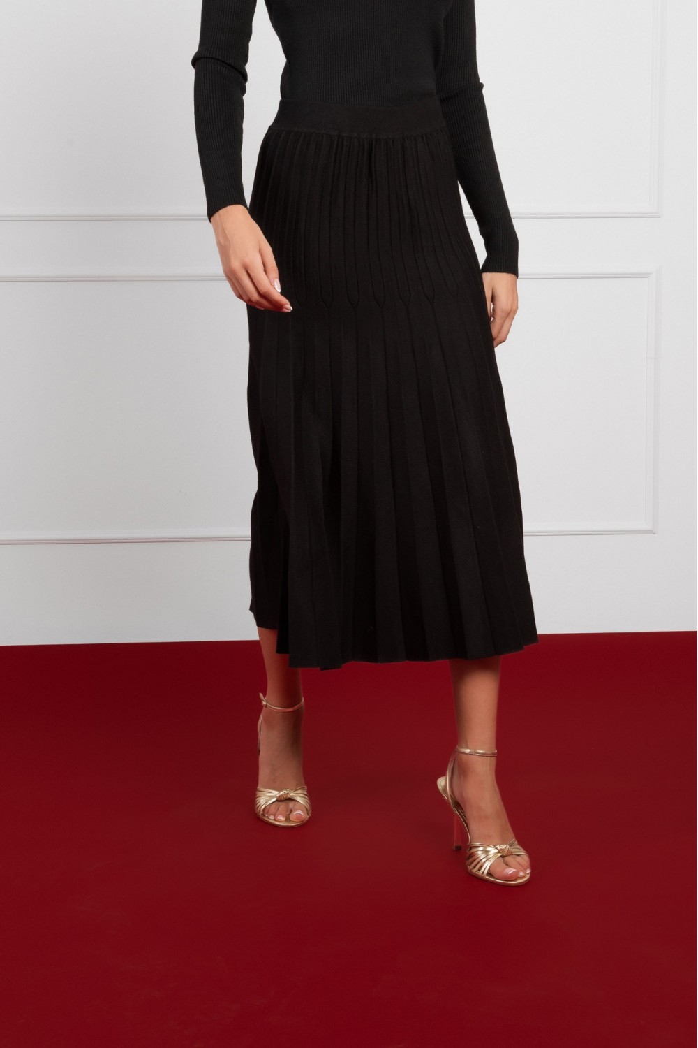 Crna maxi traper suknja s prorezom sprijeda donosi savršenu ravnotežu između klasičnog i modernog stila. High-waist kroj ističe struk, dok dužina i prorez daju eleganciju i slobodu pokreta. ..