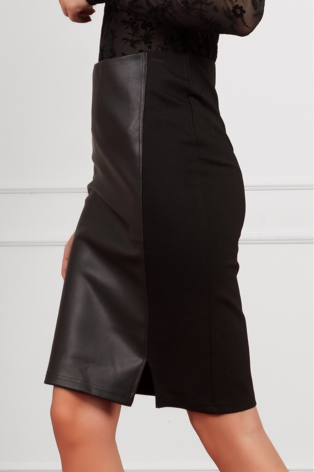 Crna mini suknja s dekorativnim gumbima idealna je za trendi i elegantne kombinacije. Izrađena od ugodne viskoze s dodatkom elastina, pruža savršeno prianjanje i udobnost tijekom cijelog dan..
