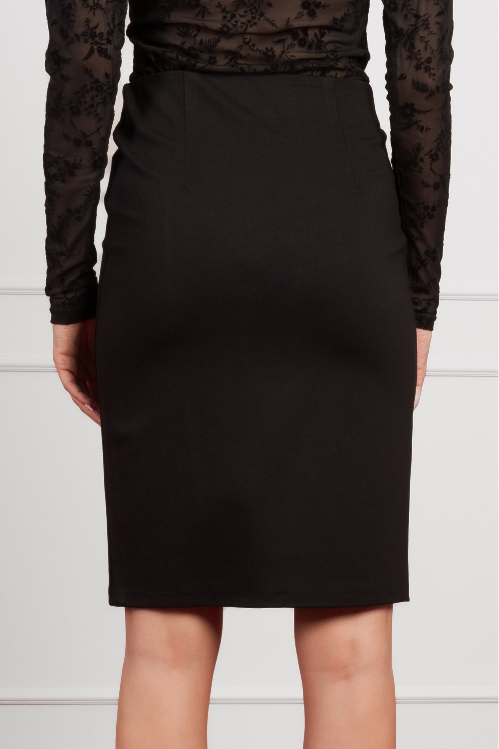 Elegantna pencil suknja s dekorativnim zlatnim gumbima uz bočnu stranu – savršena kombinacija klasike i modernog chic stila. Zahvaljujući rastezljivom materijalu s viskozom i elastanom, udob..