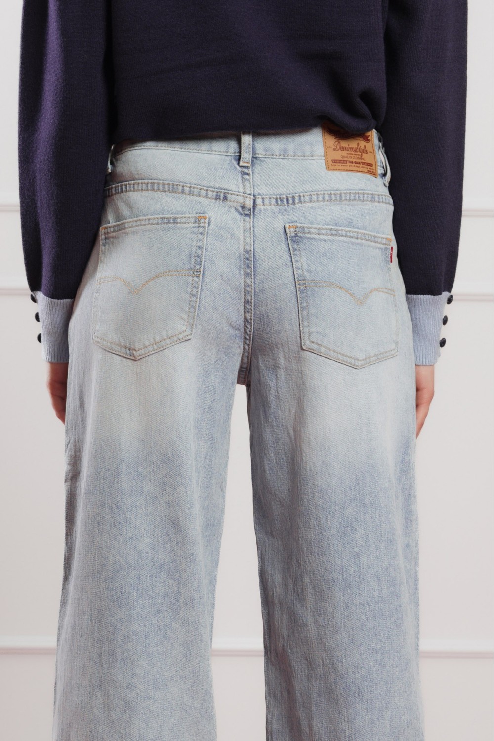 Model je visok 173 cm i nosi veličinu 42.