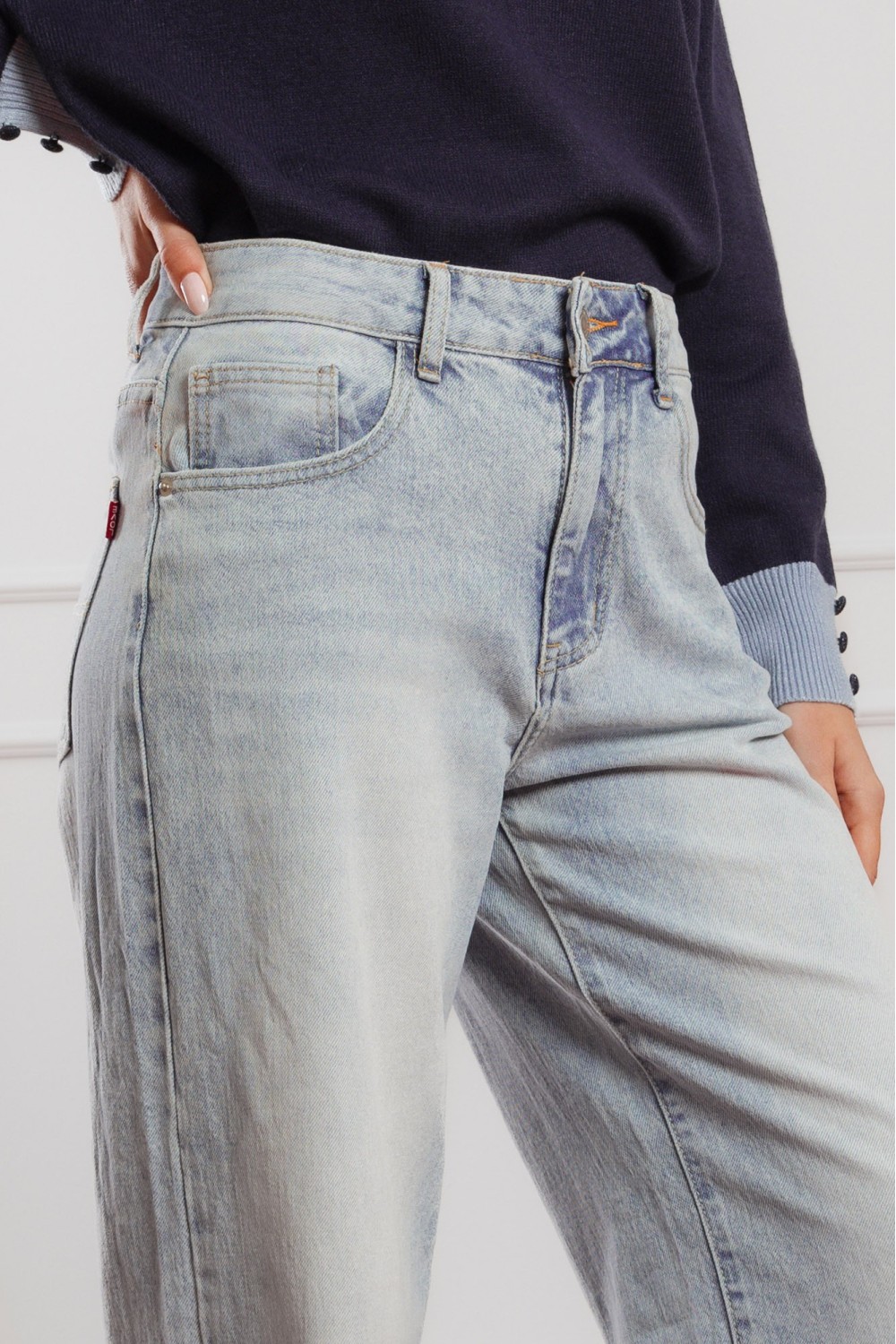 Ženske traper hlače, užih nogavica na materijalu sa elastinom. Pet džepova i kopčanje sprijeda patent zatvaračem i gumbom. Push up model s nešto drugačijim rezanjem na stražnjem dijelu, skin..