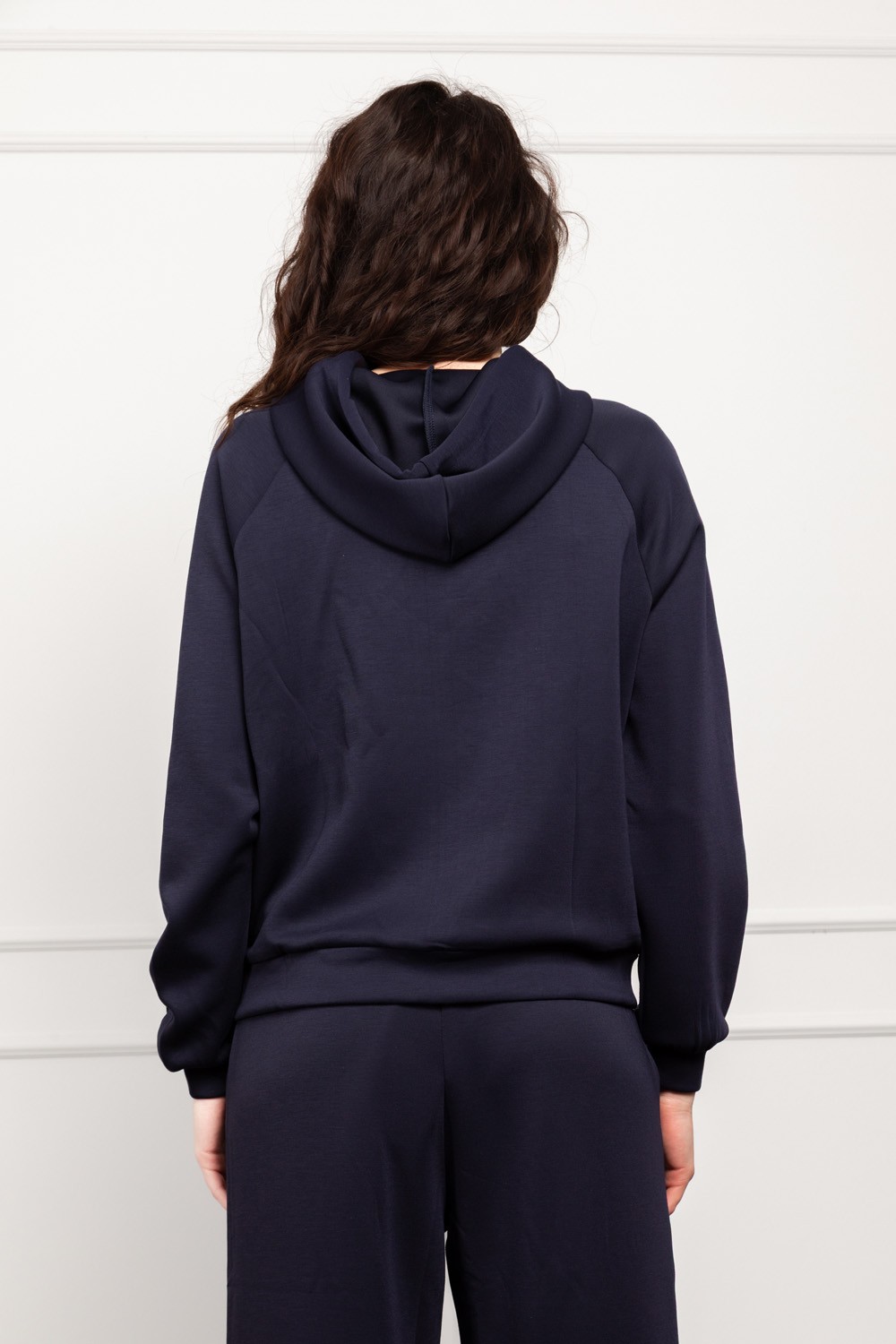 Tamno plavi gornji dio trenirke modernog i minimalističkog dizajna s metalnim zlatnim patentnim zatvaračem koji daje vrlo elegantan dojam. Krojen od mekane i izdržljive viskozne mješavine koja lijepo pada, vizualno izgleda skuplje od klasičnih sportskih trenirki i savršeno se uklapa u capsule garderobu.