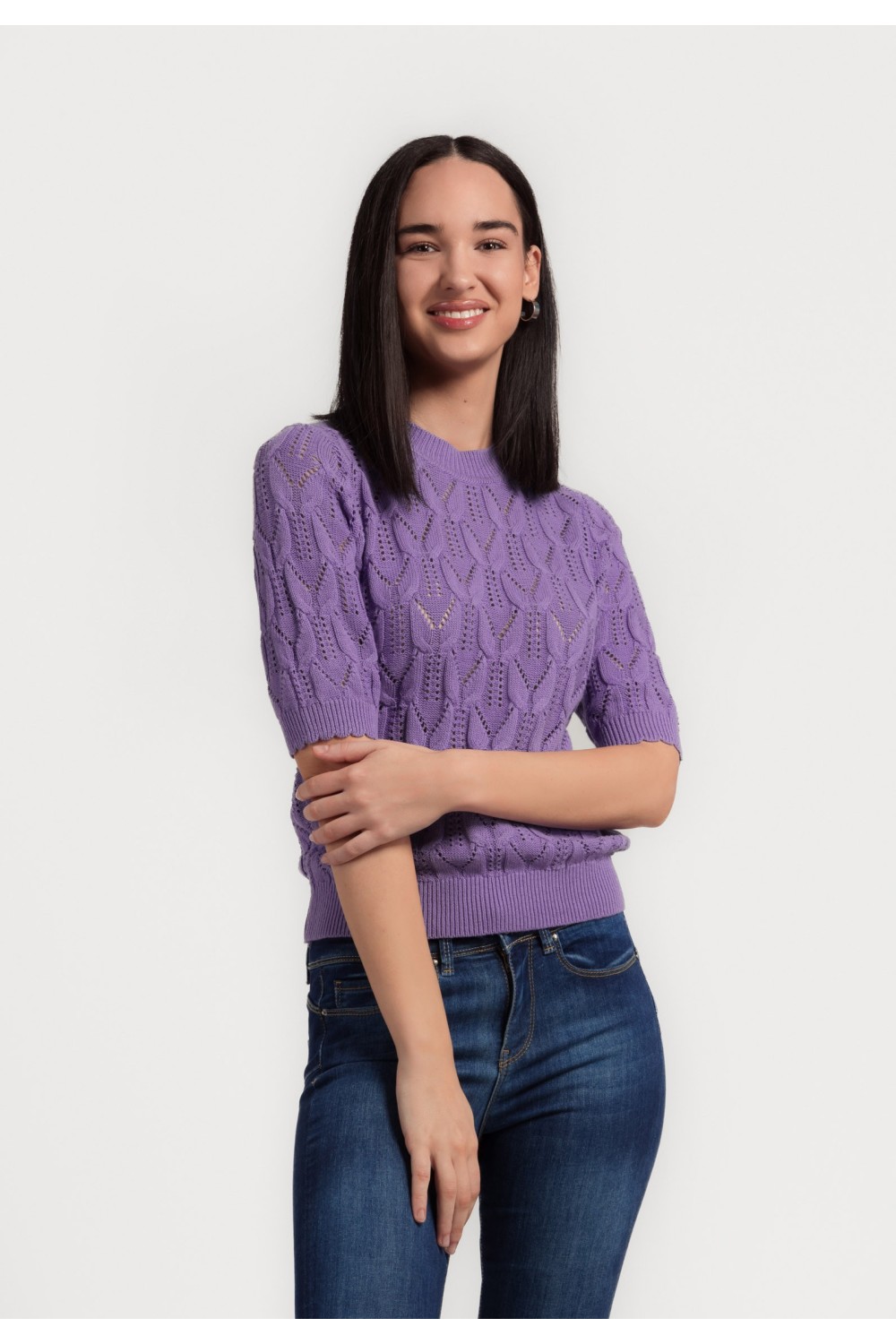 Ženstvena majica od čipkaste tkanine koja daje lagan i romantičan izgled. Jednostavan kroj s dugim rukavima lako se uklapa u svakodnevne i elegantnije kombinacije, bilo uz traperice, suknju ..