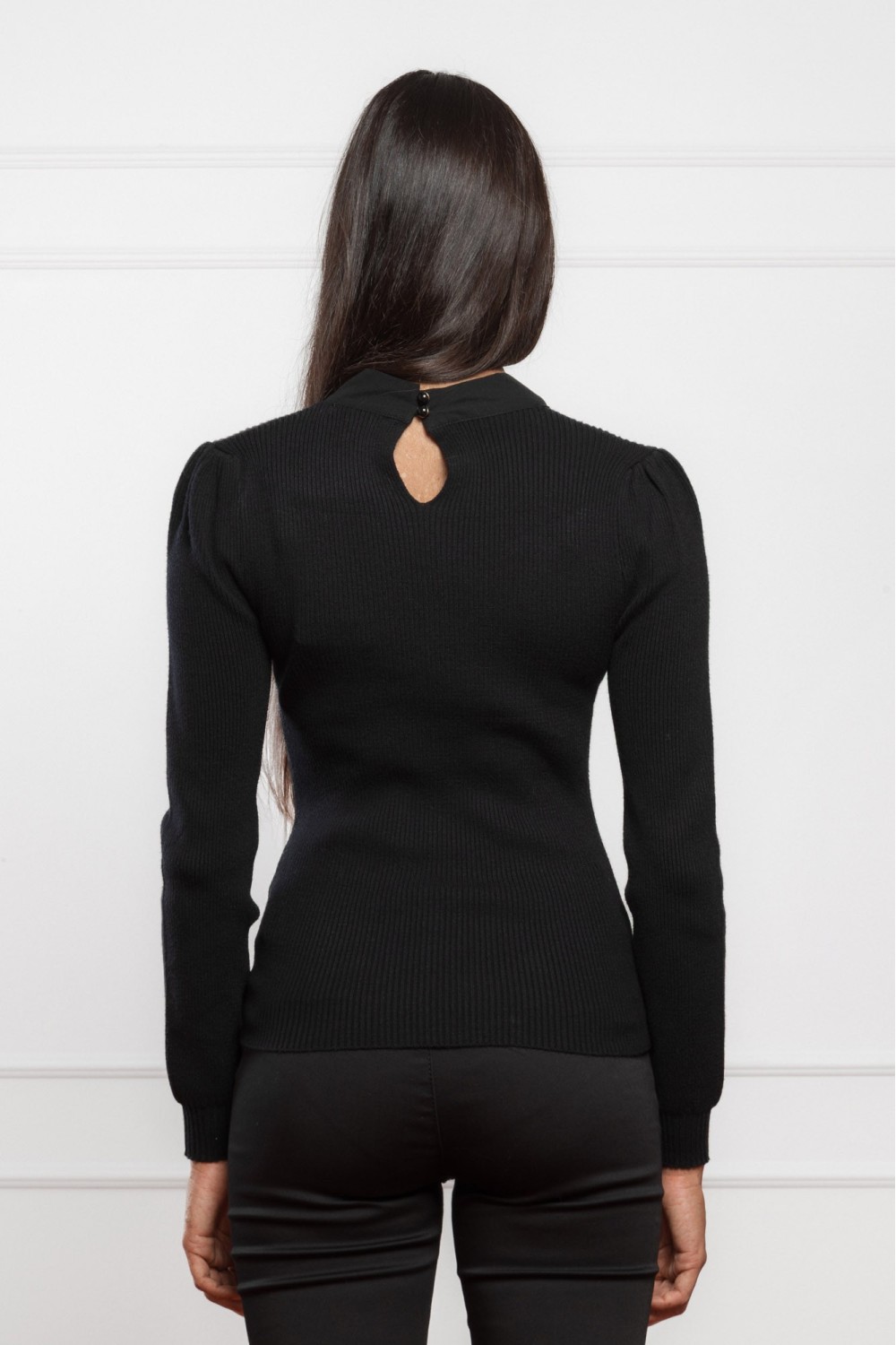 Midi haljina bez rukava u svijetloj nijansi s kontrastnim crnim točkama donosi spoj klasike i ženstvenosti. Košulja kroj s ovratnikom i kopčanjem cijelom dužinom daje joj profinjen izgled. L..