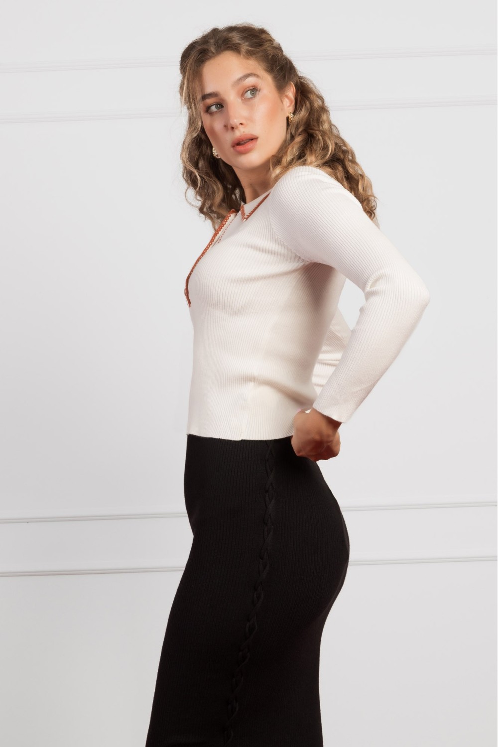 Unesite dozu posebnosti u svakodnevne kombinacije uz ovu svjetlosivu žensku vestu dugih rukava ukrašenu sitnim kristalnim detaljima. Klasičan kroj i ugodan materijal s viskozom osiguravaju u..