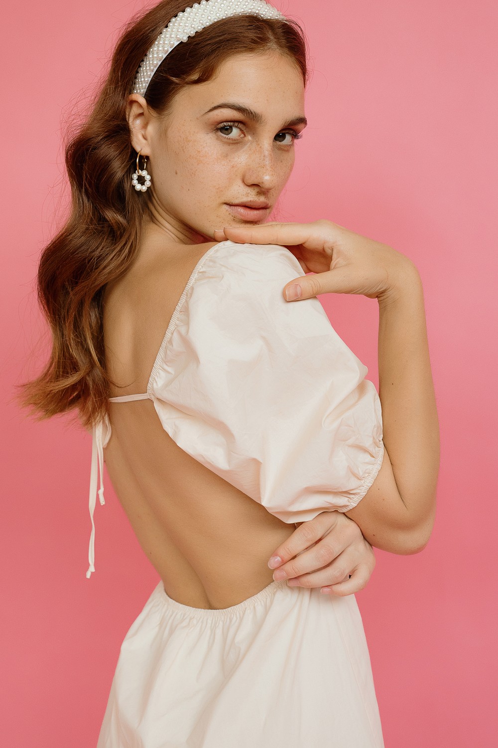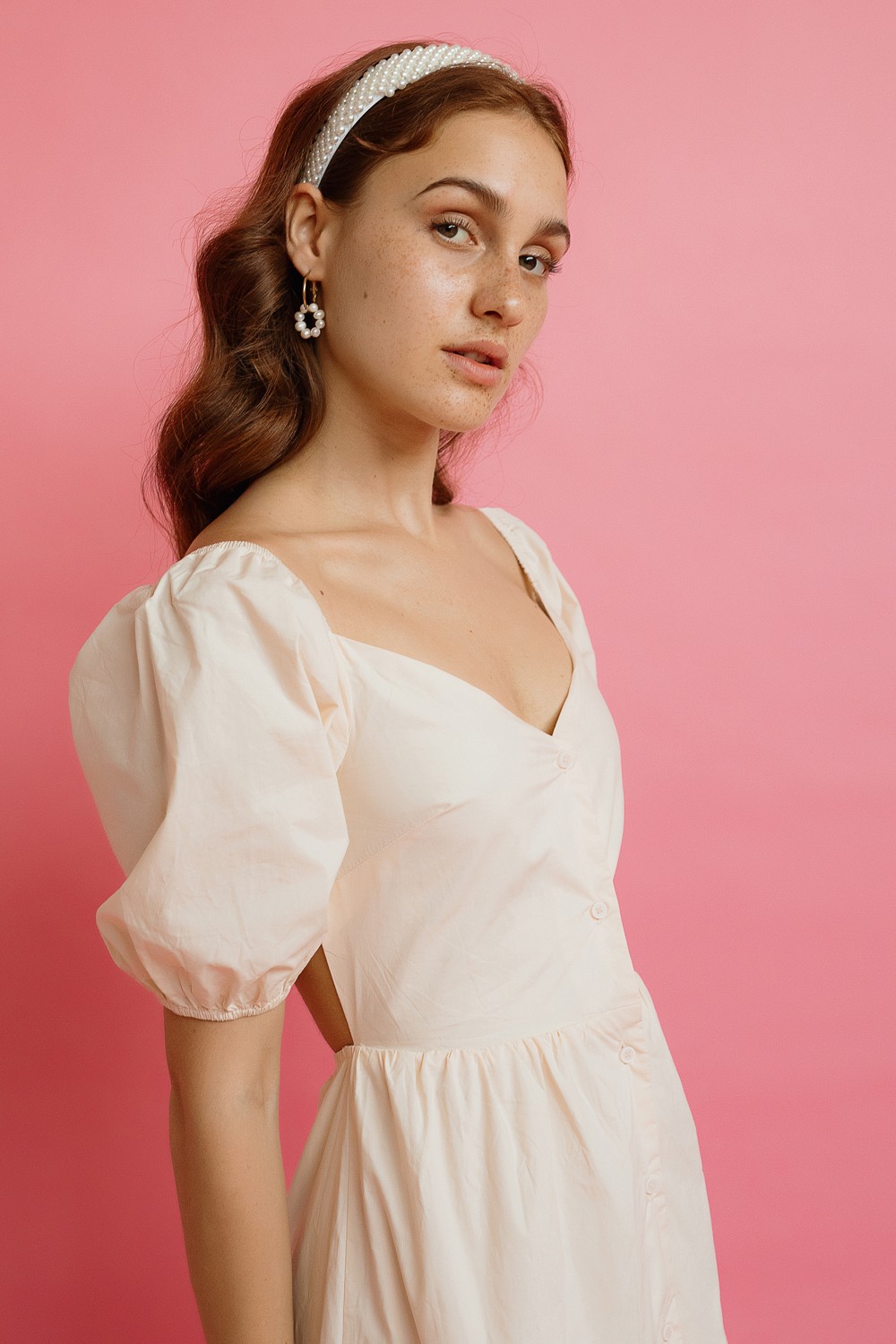 Mini haljina, na bijele točkice. Kratkog rukava, sa efektom na preklop. Detalji volana na rukavima i rubovima haljine. U struku ušivena vezica od istog matrijala i uzorka. -100% VISKOZAModel..