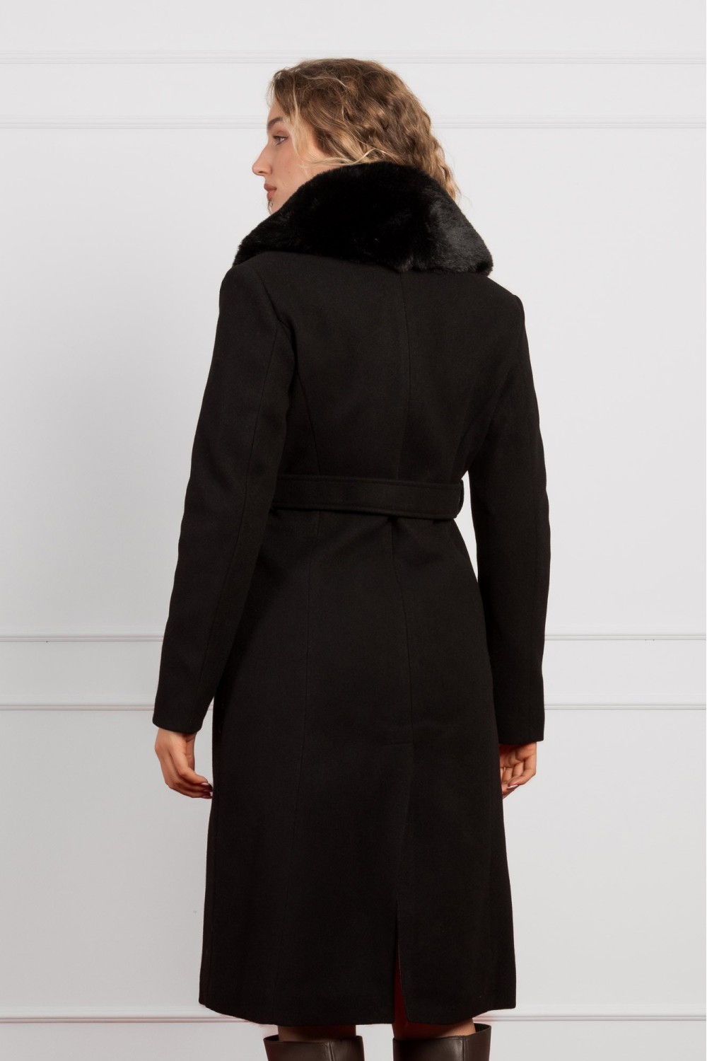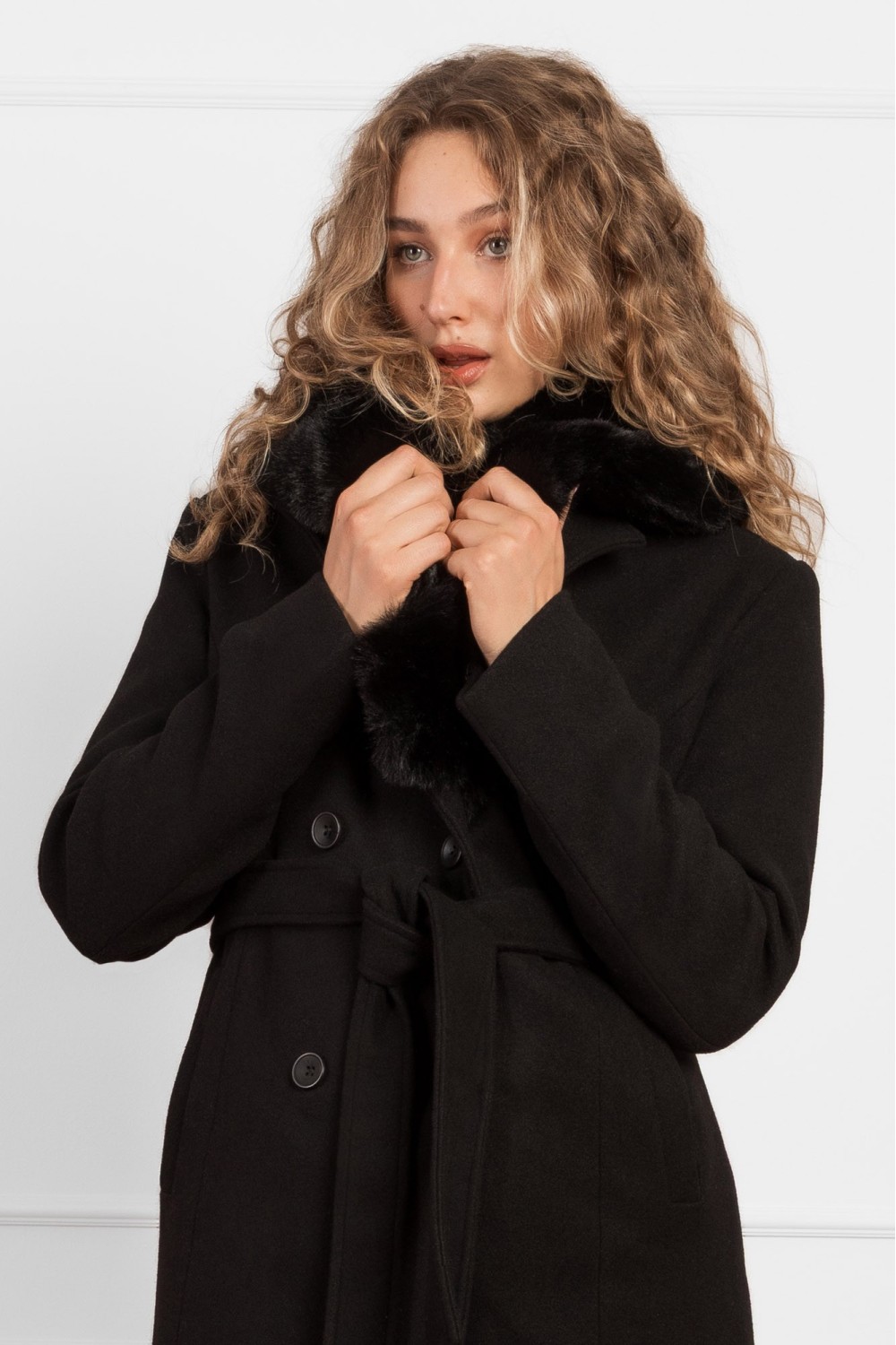 Crna ženska duga punjena jakna s elegantnim krznenim ovratnikom – savršen spoj topline, udobnosti i luksuznog izgleda. Krojenjem koje prati liniju tijela te pojasom u struku, ova jakna nagla..