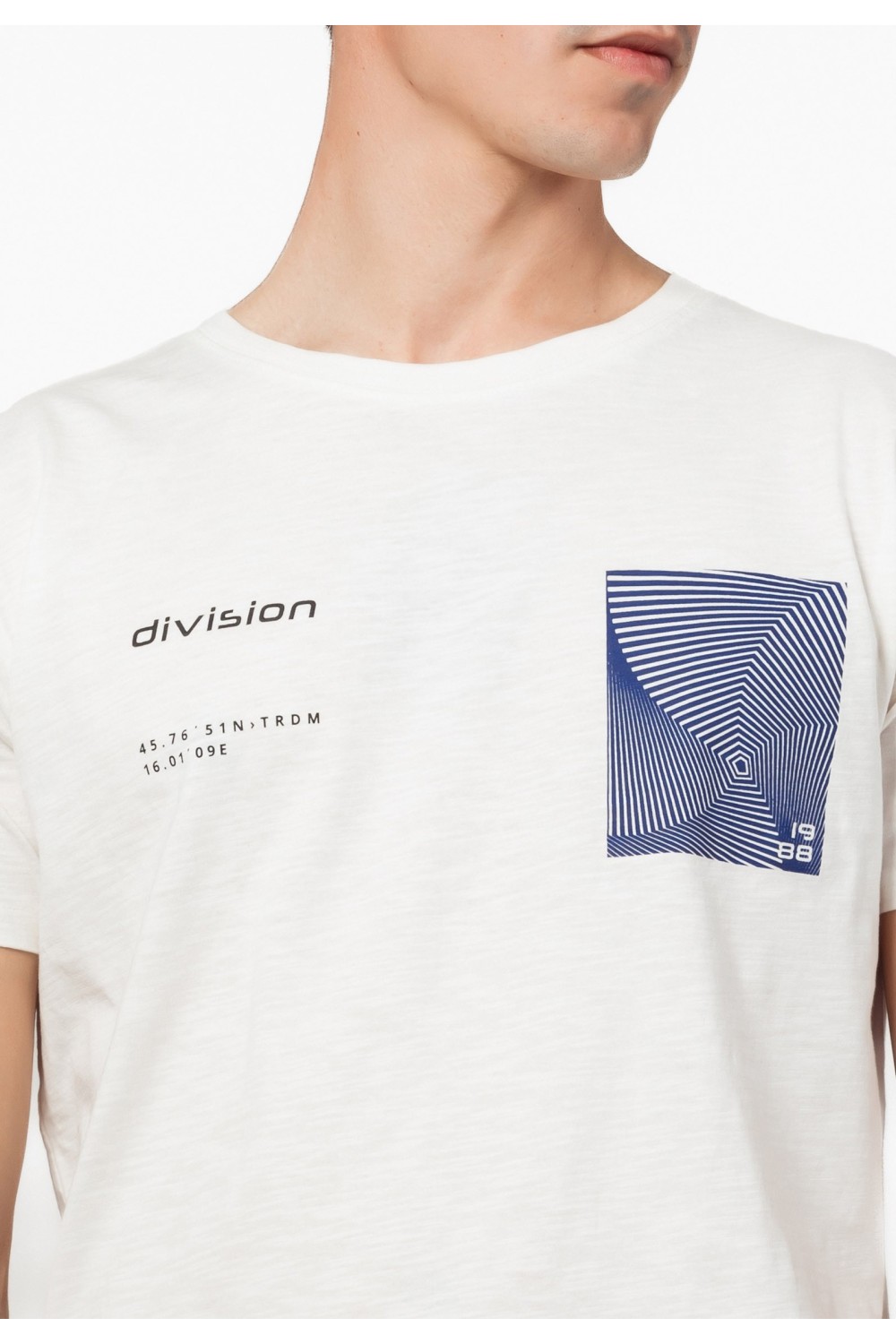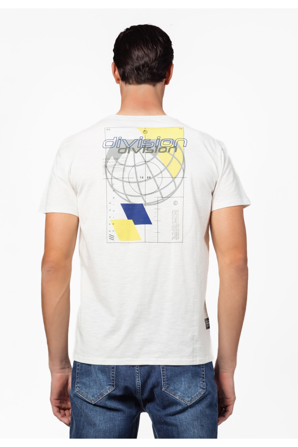 Oversize prljavo bijela muška majica, kratkog rukava. Okrugli ovratnik. Detalji patch sprijeda - s lijeve strane gore i s desne strane dolje uz tamno crveni mali tisak. - 100% PAMUKModel je..