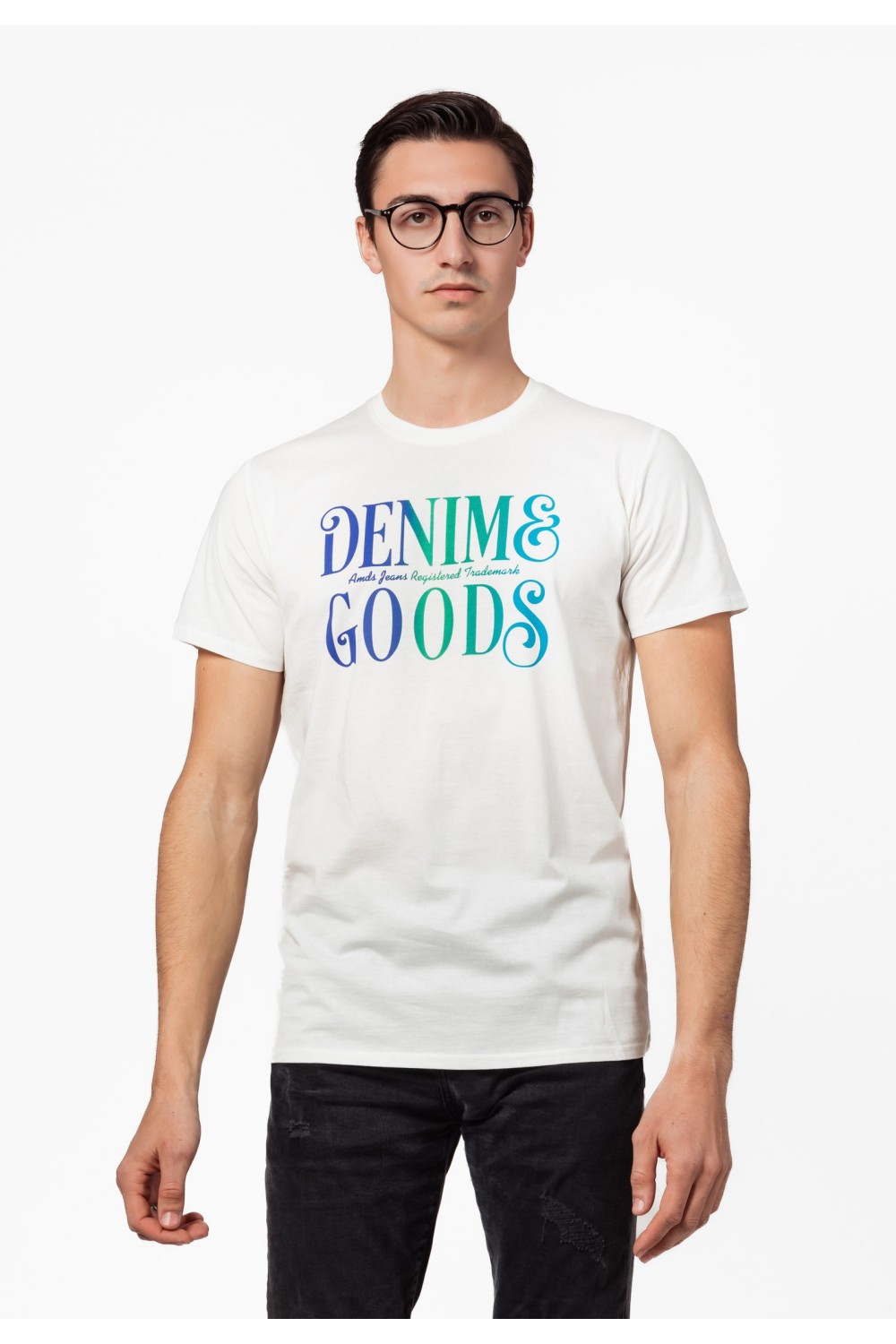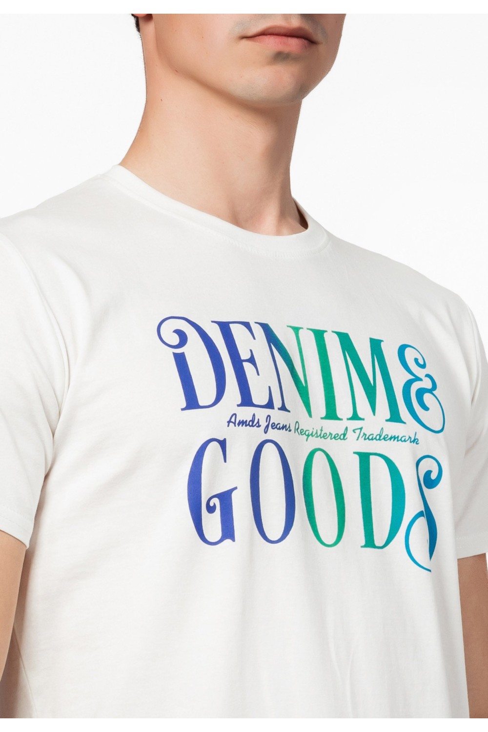 Regular fit muška tamno plava majica, kratkog rukava. Okrugli ovratnik s renderom. Sprijda gumirani sivi AMDS Jeanas tisak, te na lijevom rukavu manji tisak. - 100% PAMUKModel je visok 194 c..