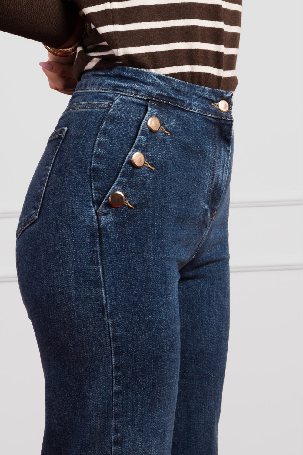 Ženske traper hlače, užih nogavica na materijalu sa elastinom. Pet džepova i kopčanje sprijeda patent zatvaračem i gumbom. Push up model s nešto drugačijim rezanjem na stražnjem dijelu, skin..