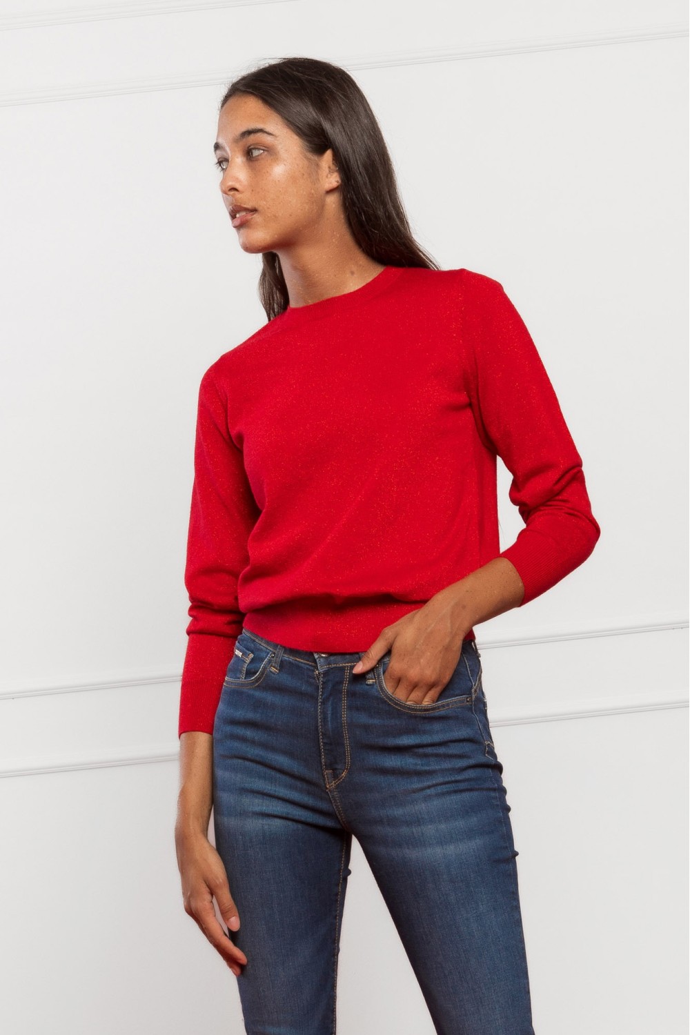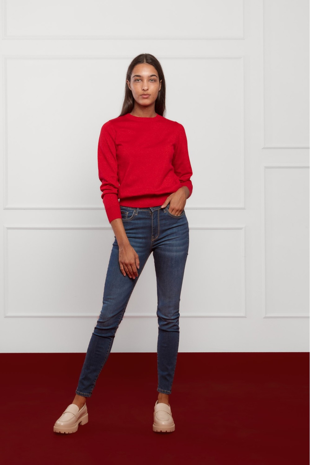 Ovaj ženski džemper sa šljokicama savršeno spaja udobnost i eleganciju. Klasičan kroj čini ga praktičnim za nošenje preko dana, dok sjajni detalji pod svjetlom pretvaraju svaki look u poseba..