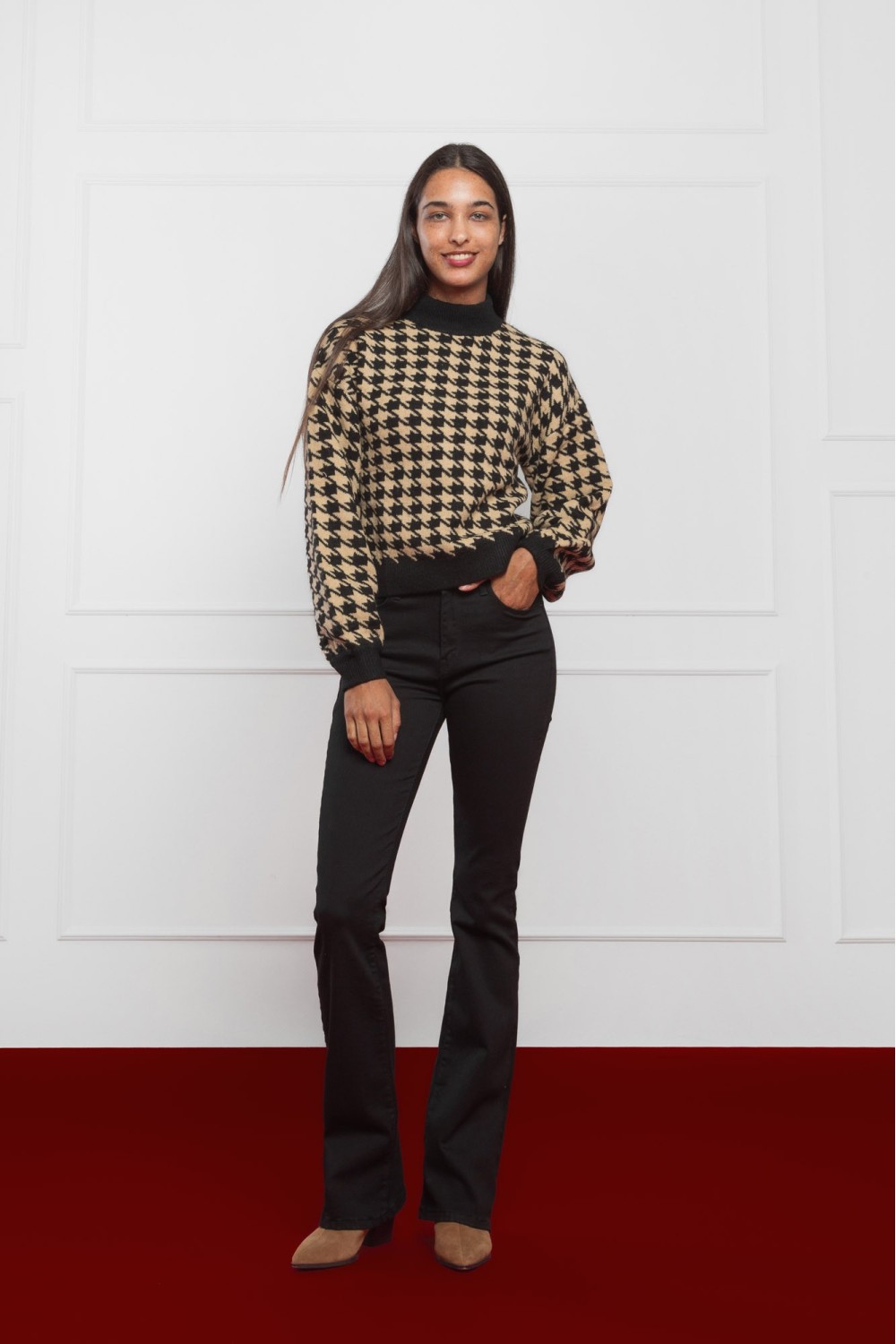 Midi haljina dugih rukava u crnom animal printu – zavodljiv i moderan model koji naglašava liniju tijela. Mekana tkanina s udjelom elastina pruža udobnost i savršeno pristajanje, dok efektna..