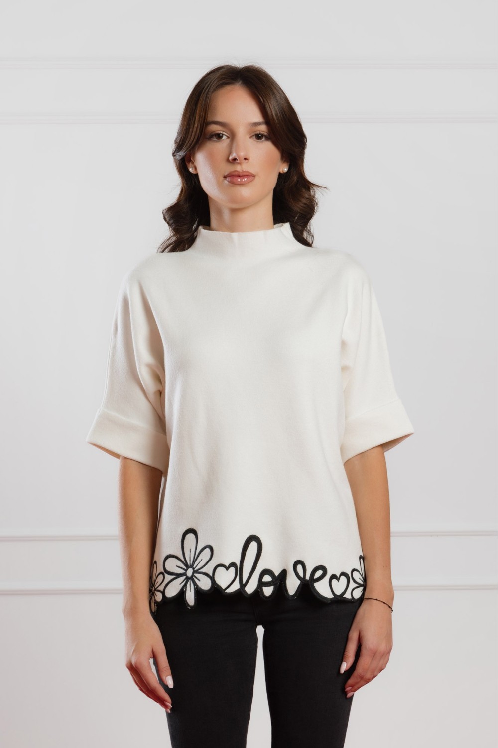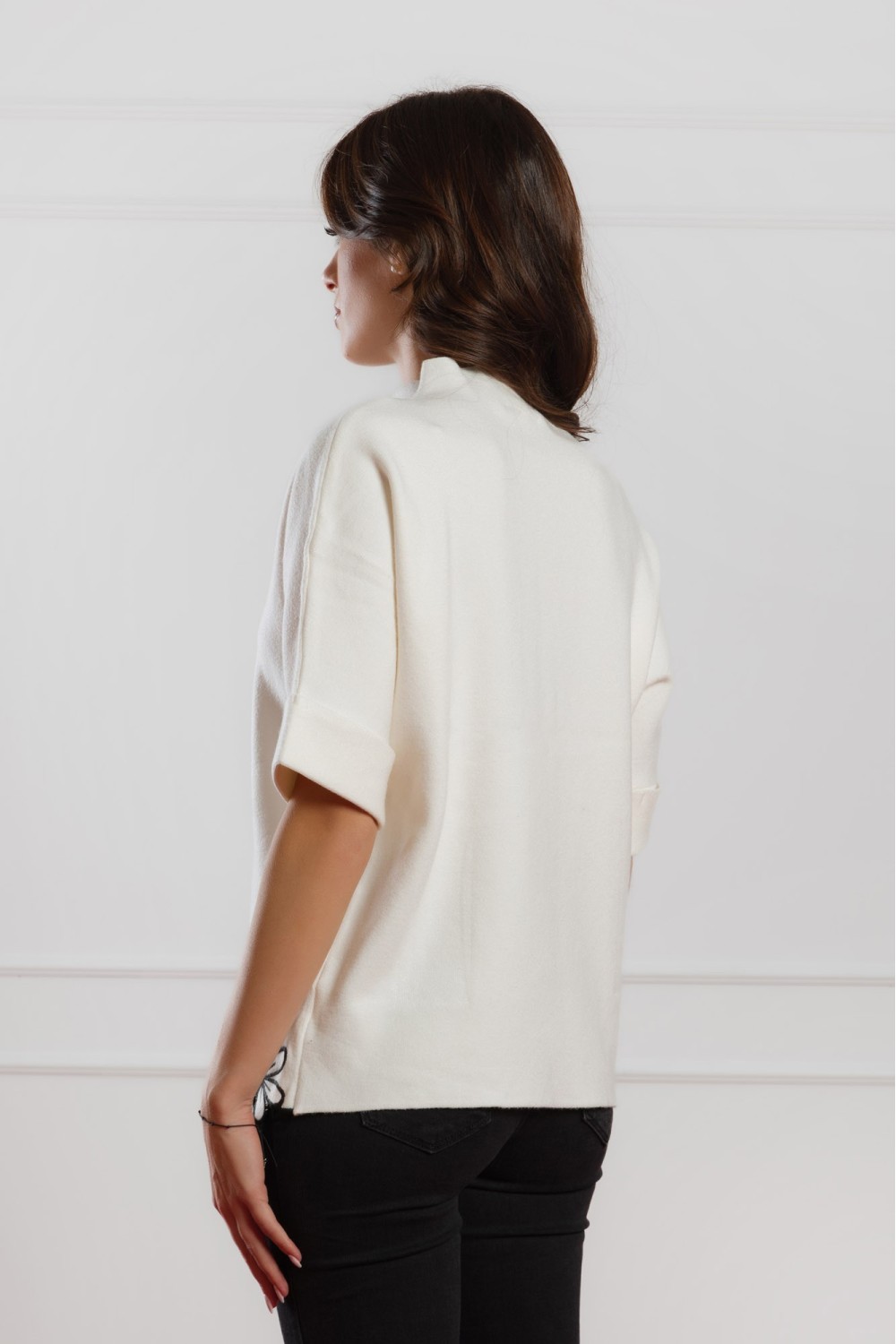 Crna pletena haljina s volanima na rukavima savršeno spaja ženstvenost i eleganciju. Ukrašena decentnim kristalima na ramenima, ova haljina donosi dašak glamura u svaku priliku – bilo da se ..