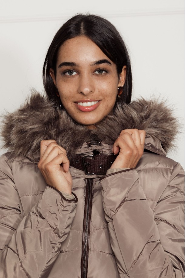 Zimska punjena jakna, s kapuljačom i krznom. Krzno se može skinuti.