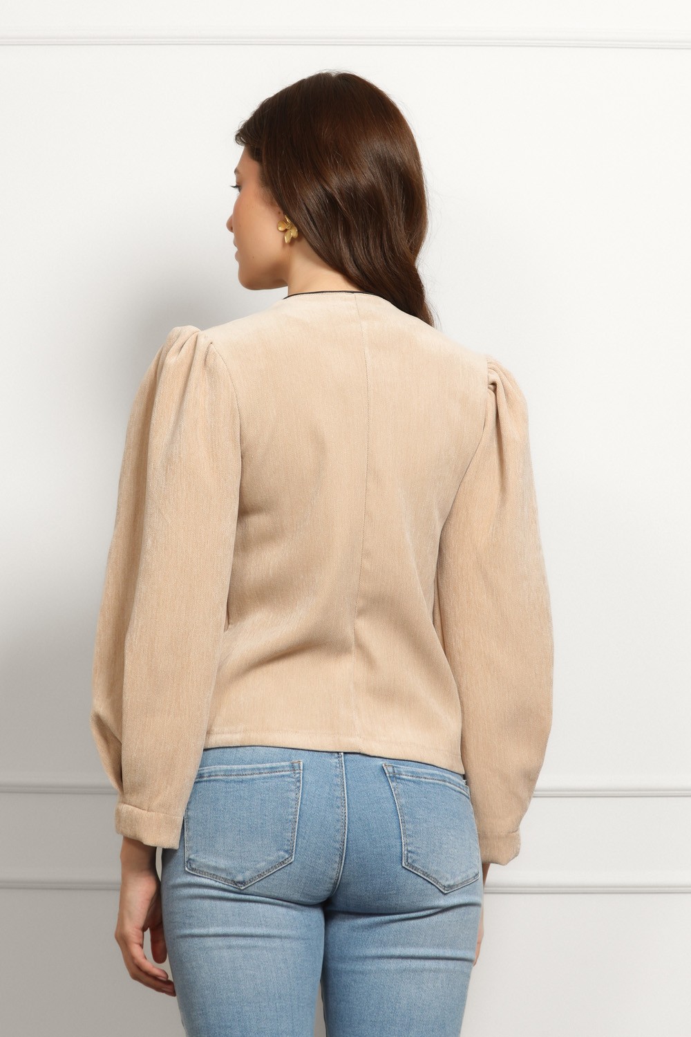 Blago naglašena ramena i čisti kroj lijepo oblikuju siluetu, dok strukturirani materijal daje dojam urednosti i luksuza. Savršena je za poslovne kombinacije uz hlače visokog struka.