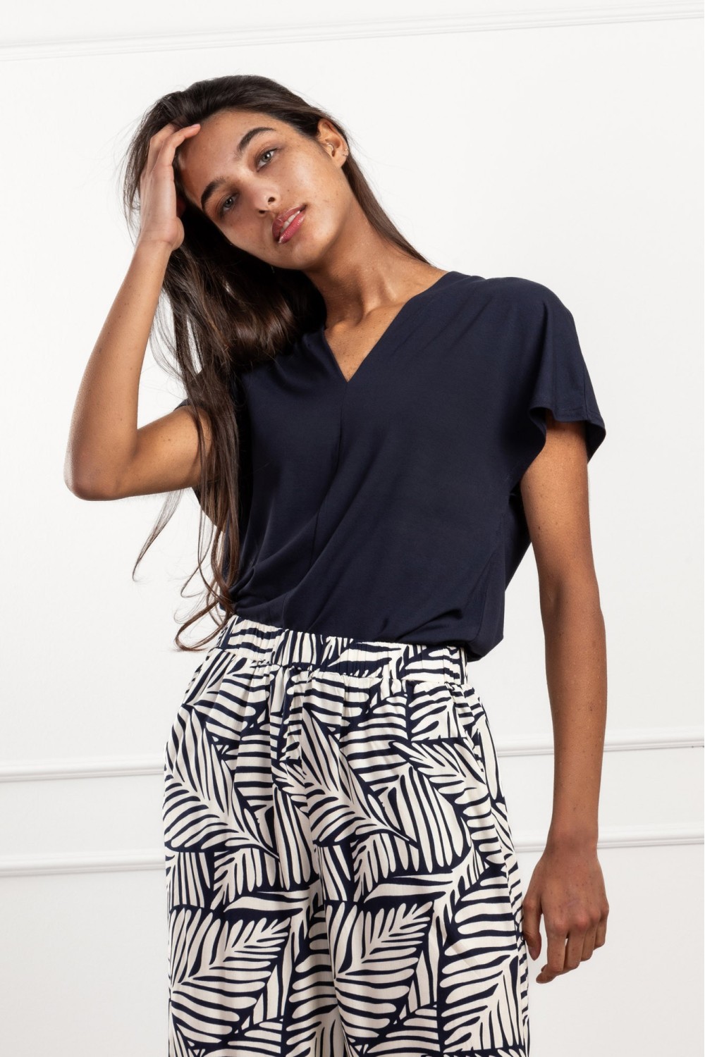SASTAV:95% VISKOZA, 5% ELASTINModel je visok 175 cm i nosi veličinu S/V36..