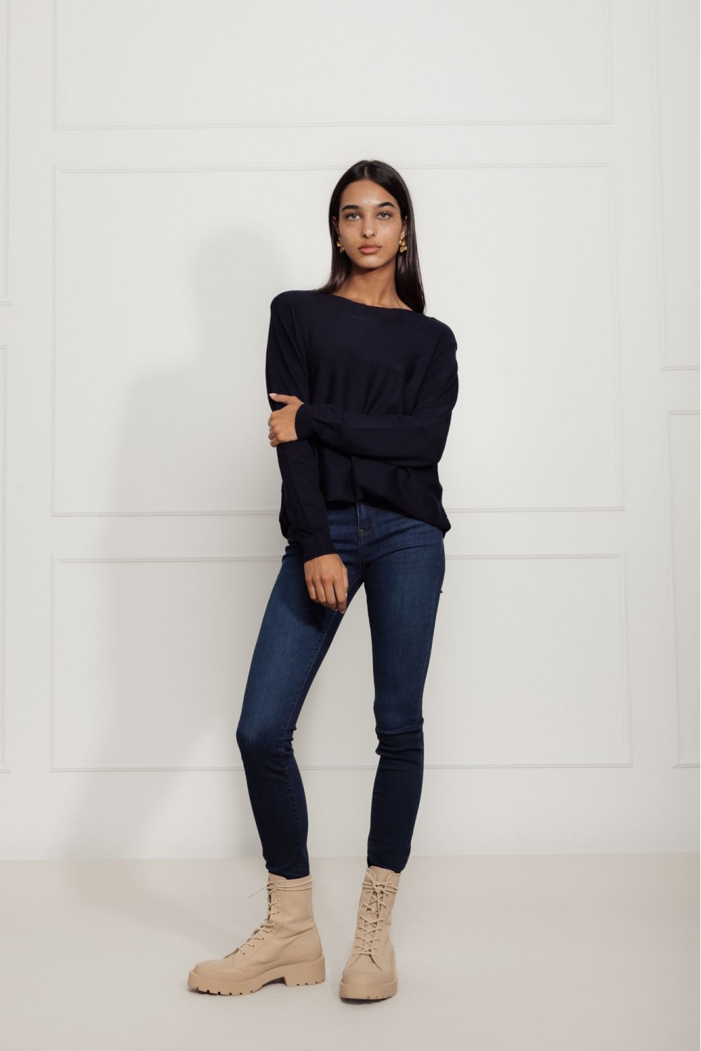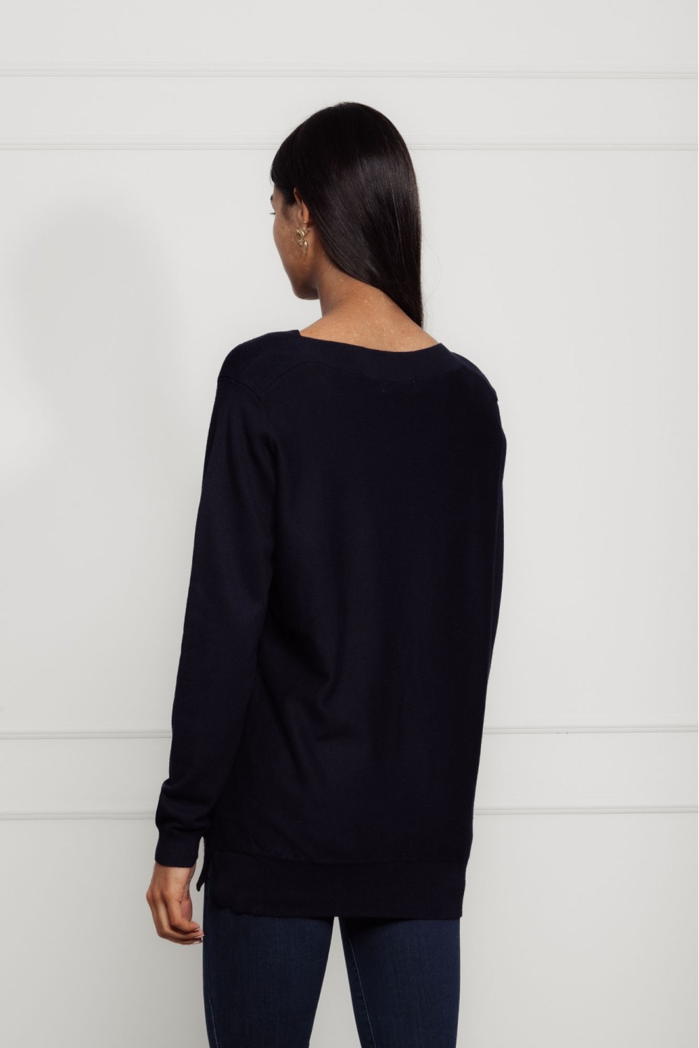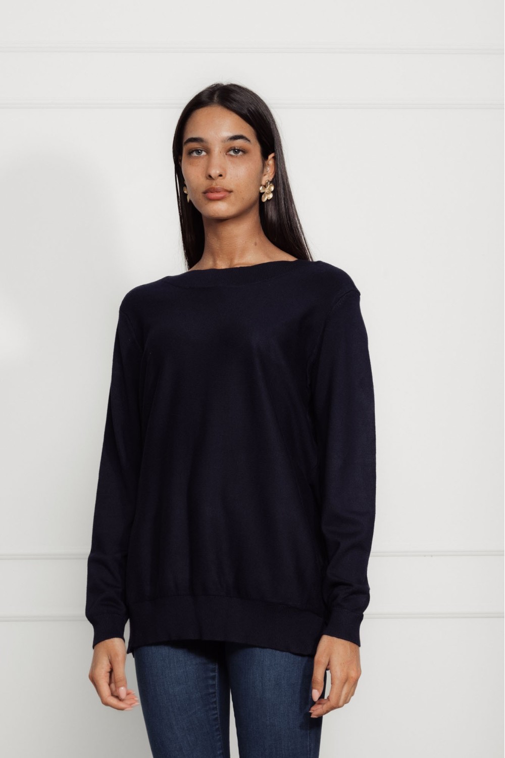 Pletena vesta dugog rukava s povišenim ovratnikom i metalnim patentnim zatvaračem, te metalnom pločicom s lijeve strane pri donjem rubu. -100% PAMUKModel je visok 190 cm i nosi veličinu V50..